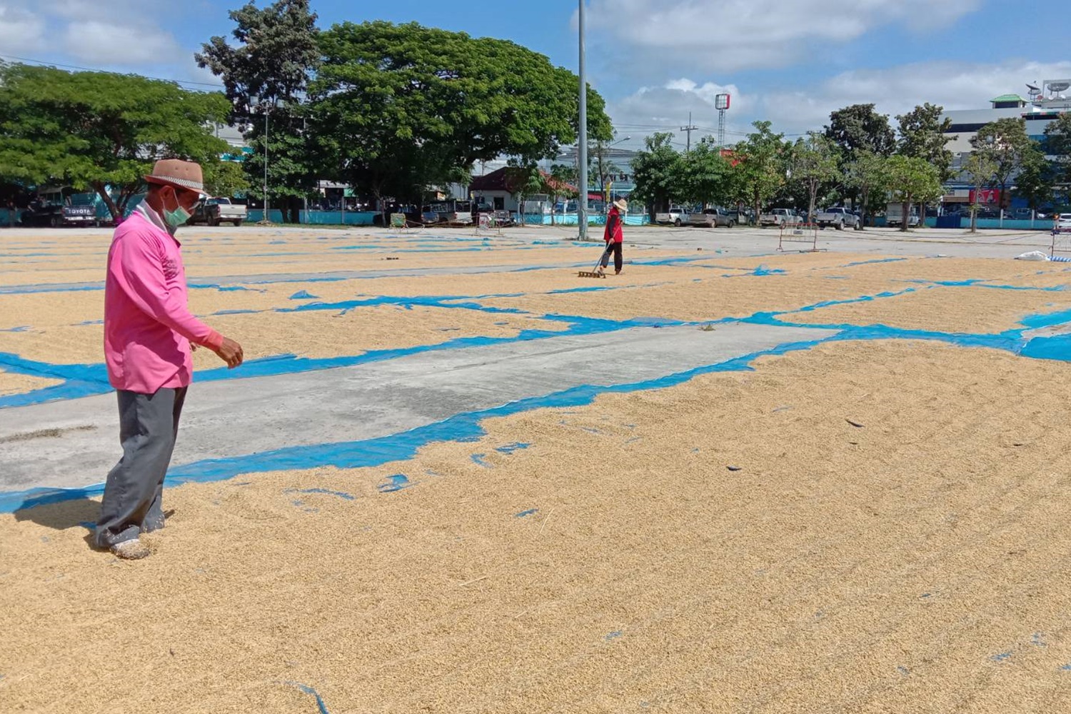 หมดปัญหาข้าวเปลือกถูกขโมย ชาวนาได้ลานตากหน้าที่ว่าการอำเภอ