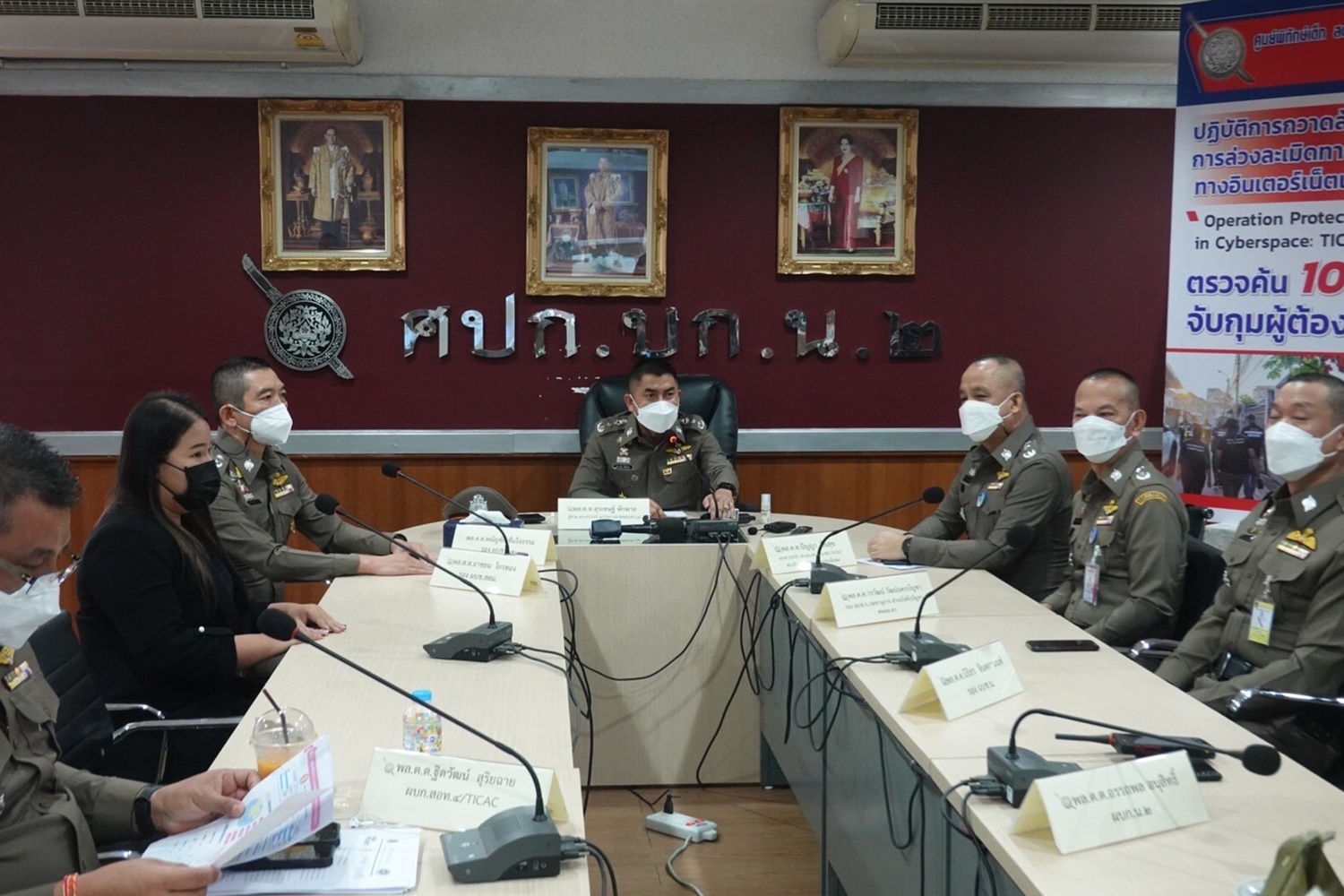 เมื่อวันที่ 12 พ.ย.64 ที่ห้องประชุม บก.น. 2 พล.ต.ท.สุรเชษฐ์ หักพาล ผู้ช่วย ผบตร. ในฐานะ รองผอ. ศพดส.ตร.พร้อมด้วย พล.ต.ท.ปัญญา ปิ่นสุข ผบช.ประจำสำนักงานผบ.ตร. พล.ต.ต.อาชยน ไกรทอง รองผบช.สตม. พล.ต.ต.พนัญชัย ชื่นใจธรรม รองผบช.ภ.1 พล.ต.ต.วรวัฒน์ วัฒน์นครบัญชา รองผบช.ก. พล.ต.ต.นิธิธร จินตกานนท์ รองผบช.น. พล.ต.ต.วิวัฒน์ คําชํานาญ ผบก.ปคม. พล.ต.ต.ฐิตวัฒน์ สุริยฉาย ผู้บังคับการสืบสวนสอบสวนอาชญากรรมทางเทคโนโลยี 4 นางนันทา ไวคกุล ผู้อำนวยการกองคุ้มครองเด็กและเยาวชน กรมกิจการเด็กและเยาวชน กระทรวงการพัฒนาสังคมและความมั่นคงของมนุษย์ และนายโอภาส ภูครองนาค ผู้อำนวยการศูนย์ประสานงานขับเคลื่อนการส่งเสริมและปกป้องคุ้มครองเด็กและเยาวชนในการใช้สื่อออนไลน์ (COPAT) ตัวแทนแทนมูลนิธิ HUG project และตัวแทน NGO ต่างๆ ร่วมกันแถลงผลการปฎิบัติของเจ้าหน้าที่ชุดปฏิบัติการ ปราบปรามการล่วงละเมิดทางเพศต่อเด็กทางอินเตอร์เน็ต (Thailand Internet Crimes Against Children -TICAC Task Force) และศูนย์พิทักษ์เด็ก สตรี ครอบครัว และป้องกันปราบปรามการค้ามนุษย์ สำนักงานตำรวจแห่งชาติ หรือ ศพดส.ตร. ในปฏิบัติการกวาดล้างและจับกุมการล่วงละเมิดทางเพศทางอินเตอร์เน็ตและค้ามนุษย์ เข้าตรวจค้น และจับกุมผู้ต้องหาที่มีพฤติกรรมล่วงละเมิดทางเพศต่อเด็กทางอินเตอร์เน็ต และค้ามนุษย์