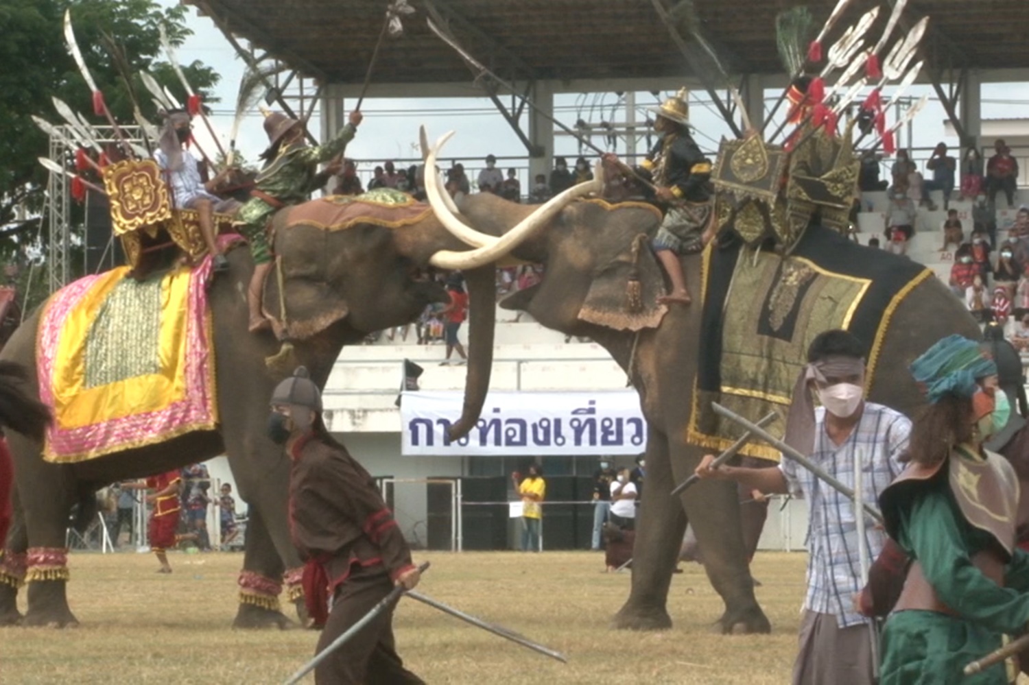 เมื่อวันที่ 25ธ.ค.64 นายสุวพงศ์ กิติภัทย์พิบูลย์ ผู้ว่าราชการจังหวัดสุรินทร์ เป็นประธานในการเปิดงานการแสดงของช้างประจำปี 2564 ที่สนามแสดงช้าง ต.นอกเมือง อ.เมือง จ.สุรินทร์ โดยคณะกรรมการโรคติดต่อจังหวัดได้วางมาตรการในการเข้าชมการแสดงตามมาตรการคุมโควิด-19 และจัดตำแหน่งที่นั่งเว้นที่นั่งบนอัฒจรรย์ วันนี้มีนักท่องเที่ยวชาวไทยและชาวต่างประเทศ เข้าชมการแสดงของช้าง มีจำนวนน้อยมากที่สุดตั้งแต่จัดงานแสดงของช้างมามาในรอบ 61 ปี ซึ่งฉากการแสดงช้างที่ยิ่งใหญ่ ที่กำหนดไว้จำนวน 4 ฉากหรือ 4 องก์ ประกอบด้วย
