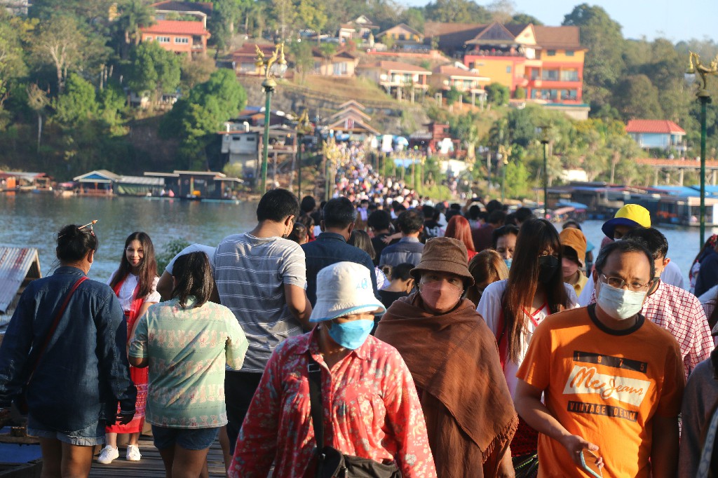 นักท่องเที่ยวแน่นสะพาญมอญสังขละบุรีจนต้องคุมจำนวนเดินข้าม