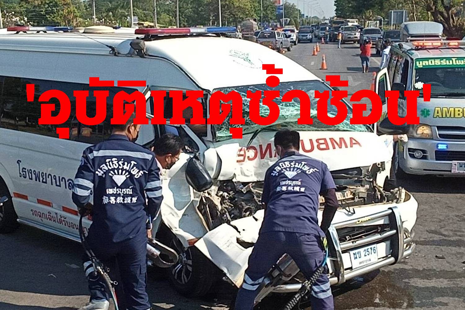 เพชรบูรณ์-อุบัติเหตุซ้ำซ้อนรถพยาบาลฉุกเฉิน รพ.ชนแดน ชนรถสายตรวจตร.กลางแยกยูเทิร์น มีผู้บาดเจ็บ 7 ราย