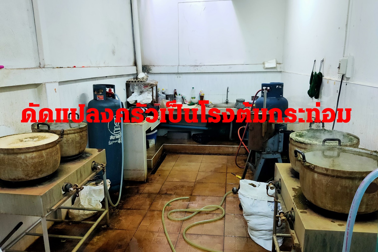 จากการเข้าตรวจค้นในบ้านพบว่าในห้องครัวถูกแปลงสภาพเป็นโรงผลิตน้ำใบกระท่อมขนาดย่อม มีน้ำใบกระท่อม ที่กำลังต้มสดๆ อยู่ในหม้อขนาดใหญ่ บนเตาแก๊ส 7 หม้อ แต่ละหม้อกำลังเดือด โดยถังแก๊สที่ใช้ต้มเป็นถังแก๊สขนาด 48 กิโลกรัม รวมถึงเตาแก๊สเหมือนกับที่ใช้ในร้านอาหาร