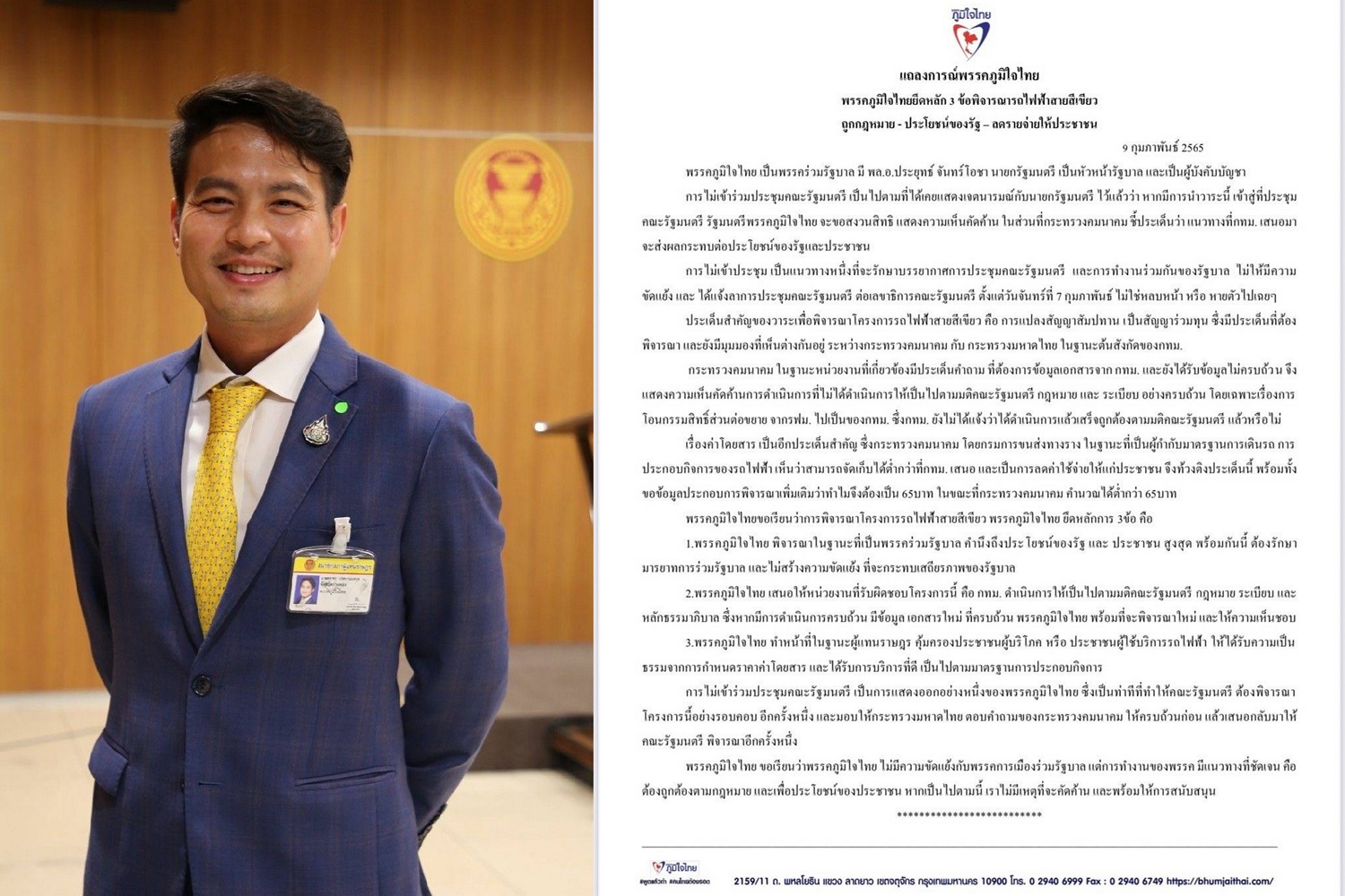 ภูมิใจไทยแถลงการณ์3ข้อปมรถไฟฟ้าสายสีเขียว