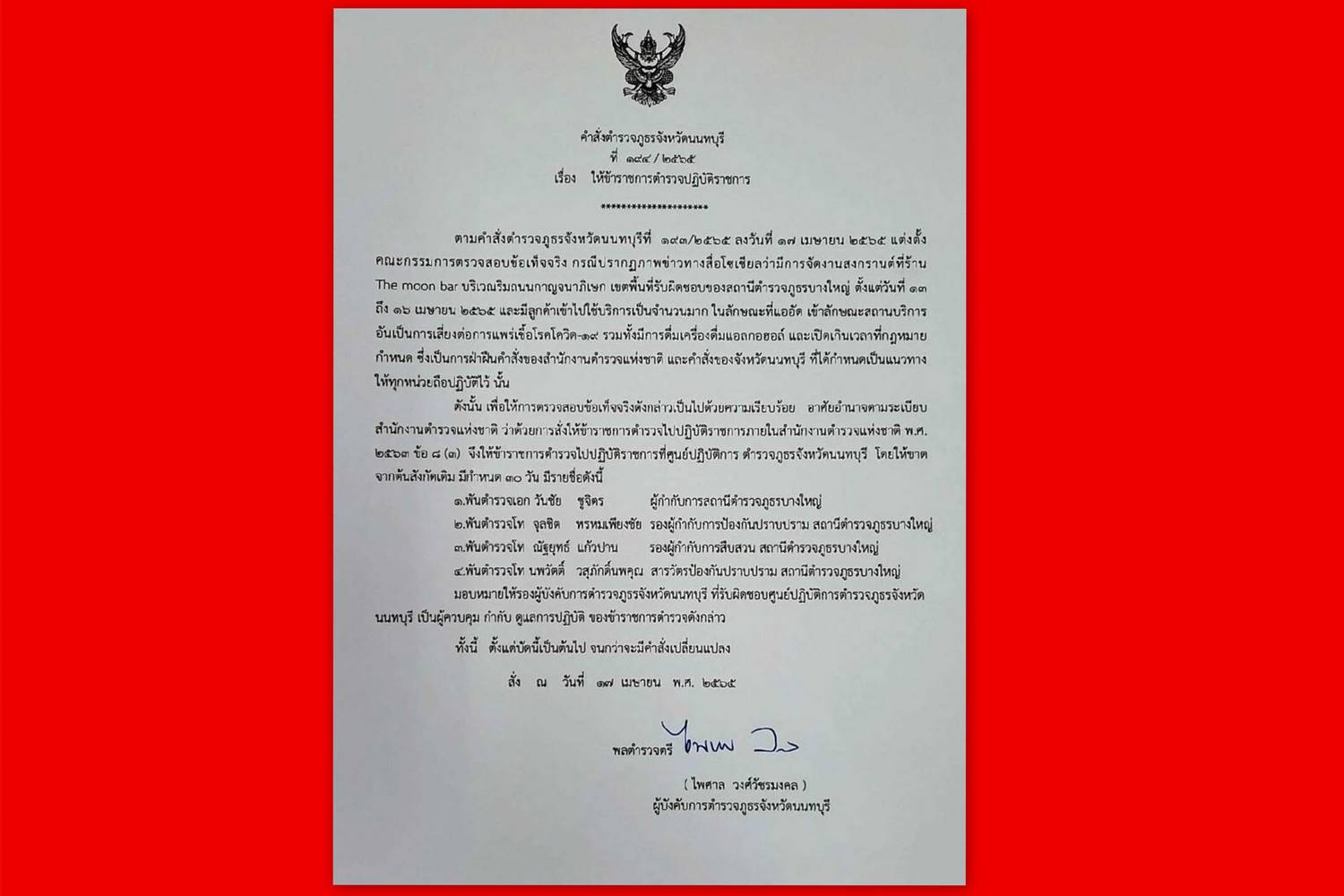 นนทบุรี-ผบก.ภ.จว.นนทบุรี สั่งเด้ง 4 เสือโรงพัก "สภ.บางใหญ่" 30 วันปล่อยร้าน"มูนบาร์" จัดปาร์ตี้สงกรานต์เสี่ยงแพร่เชื้อโควิด
