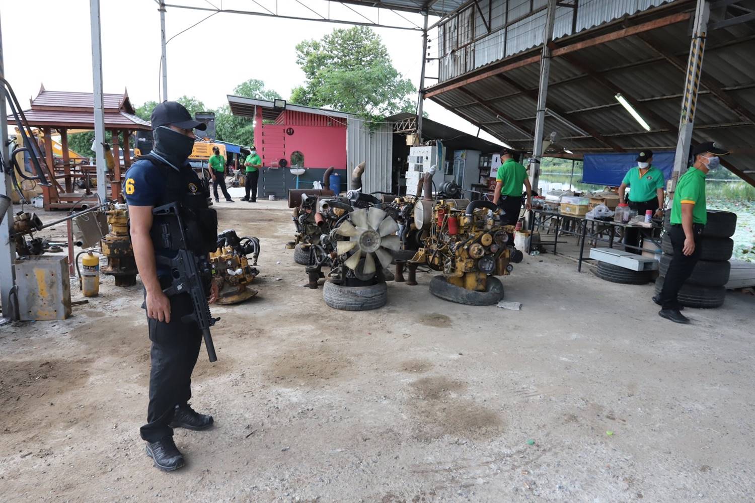สำหรับจุดเป้าหมายสำคัญที่เข้าทำการตรวจค้นในครั้งนี้ อยู่สถานประกอบกิจการอู่ซ่อมรถแม็คโคร และ เครื่องจักรกลขนาดใหญ่ ซึ่งมีหนึ่งในผู้ต้องสงสัยคนสำคัญที่เชื่อว่าน่าจะมีส่วนเกี่ยวข้องกับการสนับสนุนหรือให้การช่วยเหลือนายจำรัส และพวก หลบหนีคดีมาซ่อนตัวอยู่ในพื้นที่ กทม. ก่อนจะถูกจับกุมตัว เจ้าหน้าที่จึงนำหมายค้นศาลอาญาที่ 380/2565 ลงวันที่ 24 พ.ค.2565 เข้าทำการตรวจค้นภายใน ขณะเดียวกันยังแบ่งกำลังอีกชุดเข้าตรวจค้นบ้านพักของผู้ต้องสงสัย รายนี้ที่ต.พิมลราช อ.บางบัวทอง จ.นนทบุรี ก่อนเชิญตัวมาทำการสอบปากคำอย่างละเอียดอีกครั้งที่กองบังคับการปราบปราม