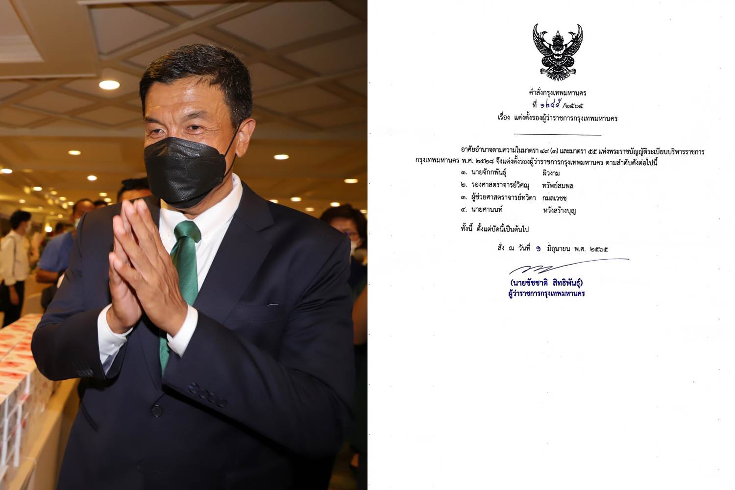 เปิดรายชื่อ รองผู้ว่าฯกทม. คณะที่ปรึกษาของผู้ว่าฯกทม. เลขานุการผู้ว่าฯกทม. ผู้ช่วยเลขาฯ และ โฆษกกทม. หลัง "ชัชชาติ" ลงนามคำสั่งแต่งตั้ง
