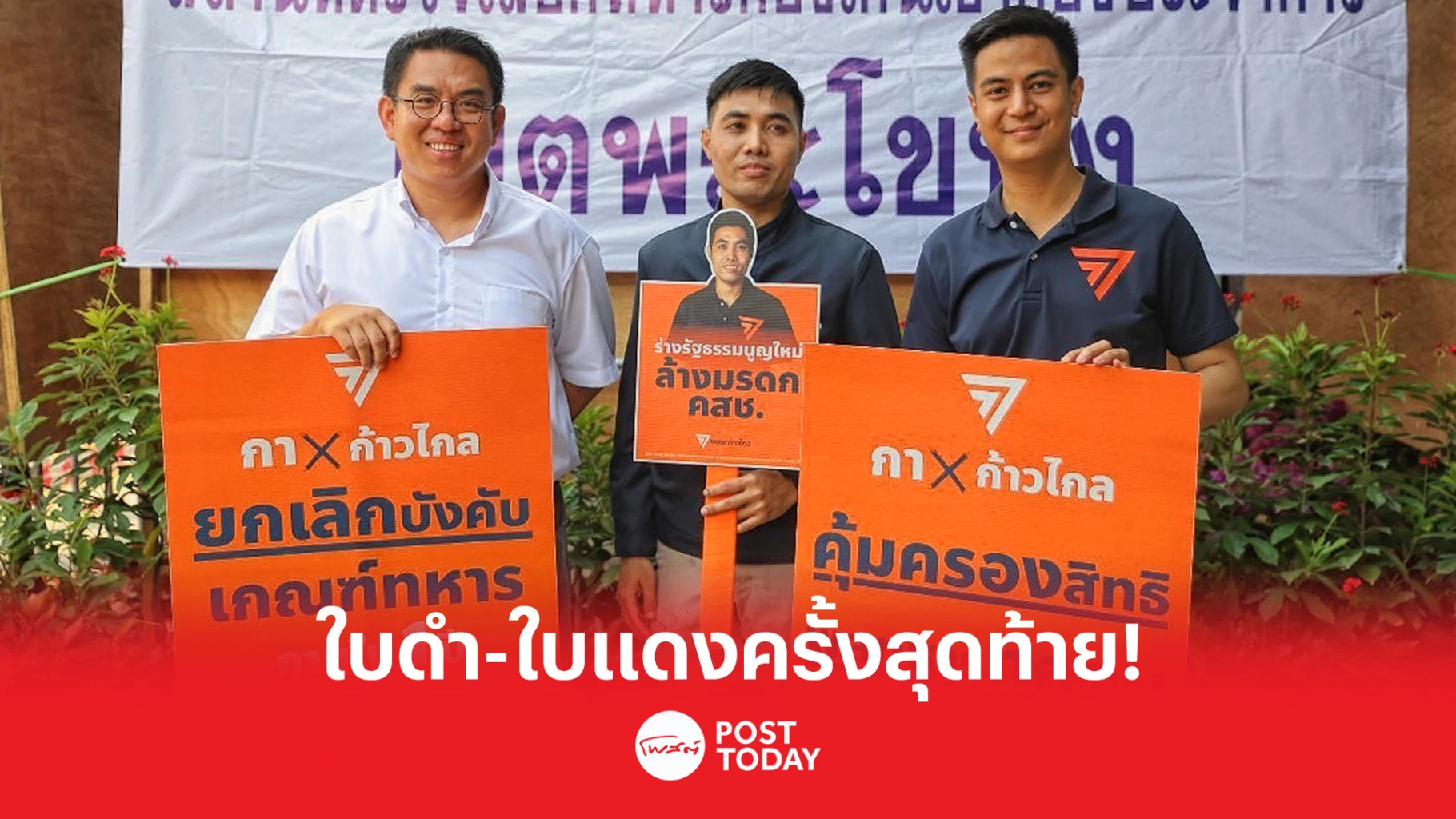 ฤดูกาลจับใบดำ-ใบแดงเวียนกลับมาอีกครั้ง โดยเช้านี้ พรรคก้าวไกล นำโดย พริษฐ์ วัชรสินธุ, วิโรจน์ ลักขณาอดิศร, ณัฐชา บุญไชยอินสวัสดิ์ และปิยรัฐ จงเทพ ผู้สมัคร ส.ส. กรุงเทพ เขตพระโขนง-บางนา ได้เข้าสังเกตการณ์ ชวนพูดคุยและทำโพลสำรวจความเห็นต่อข้อเสนอยกเลิกการบังคับเกณฑ์ทหาร ณ หน่วยจับใบดำ-ใบแดง เขตพระโขนง โดยมีผู้สมัคร ส.ส. พรรคก้าวไกล ทั่วประเทศกระจายทำกิจกรรมรณงค์ลักษณะเดียวกันในเขตเลือกตั้งของตนเอง