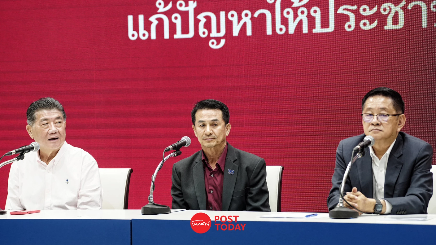 ที่พรรคเพื่อไทย หัวหน้าพรรคเพื่อไทย นายแพทย์ชลน่าน ศรีแก้ว พร้อมด้วย รองหัวหน้าพรรคเพื่อไทย นายภูมิธรรม เวชยชัย และเลขาธิการพรรคเพื่อไทย นายประเสริฐ จันทรรวงทอง ร่วมกันแถลงข่าวภายหลังการประชุม สส.