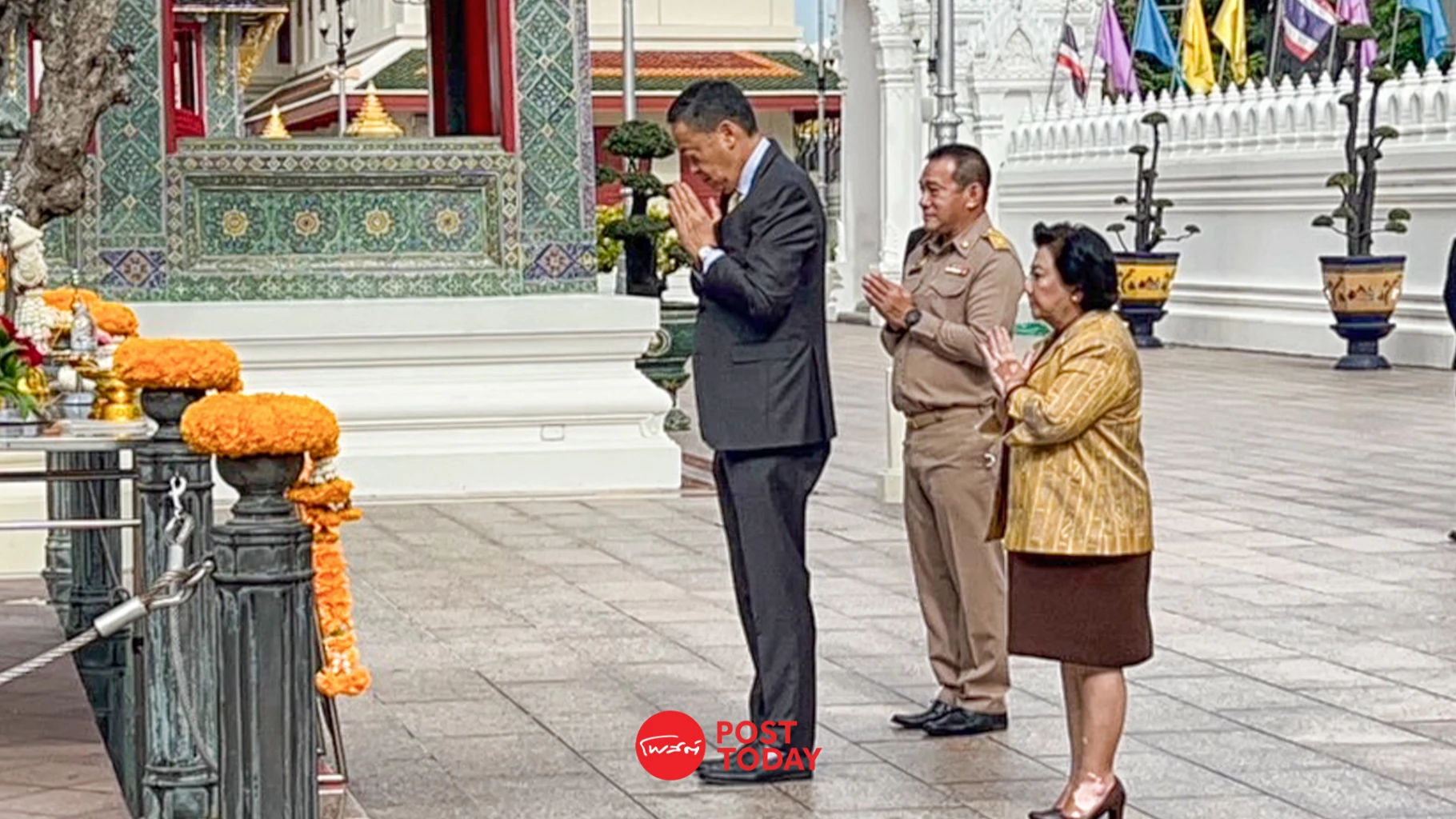 นายกฯเศรษฐา พร้อม พวงเพ็ชร รมต.ประจำสำนักนายกฯ เข้าเฝ้าสมเด็จพระสังฆราช และพระมหารัชมงคลมุนี วัดไตรนิมิตรฯ ก่อนเข้าทำเนียบรัฐบาล พิจารณาทบทวบงบประมาณรายจ่าย ประจำปีงบประมาณ 2567
