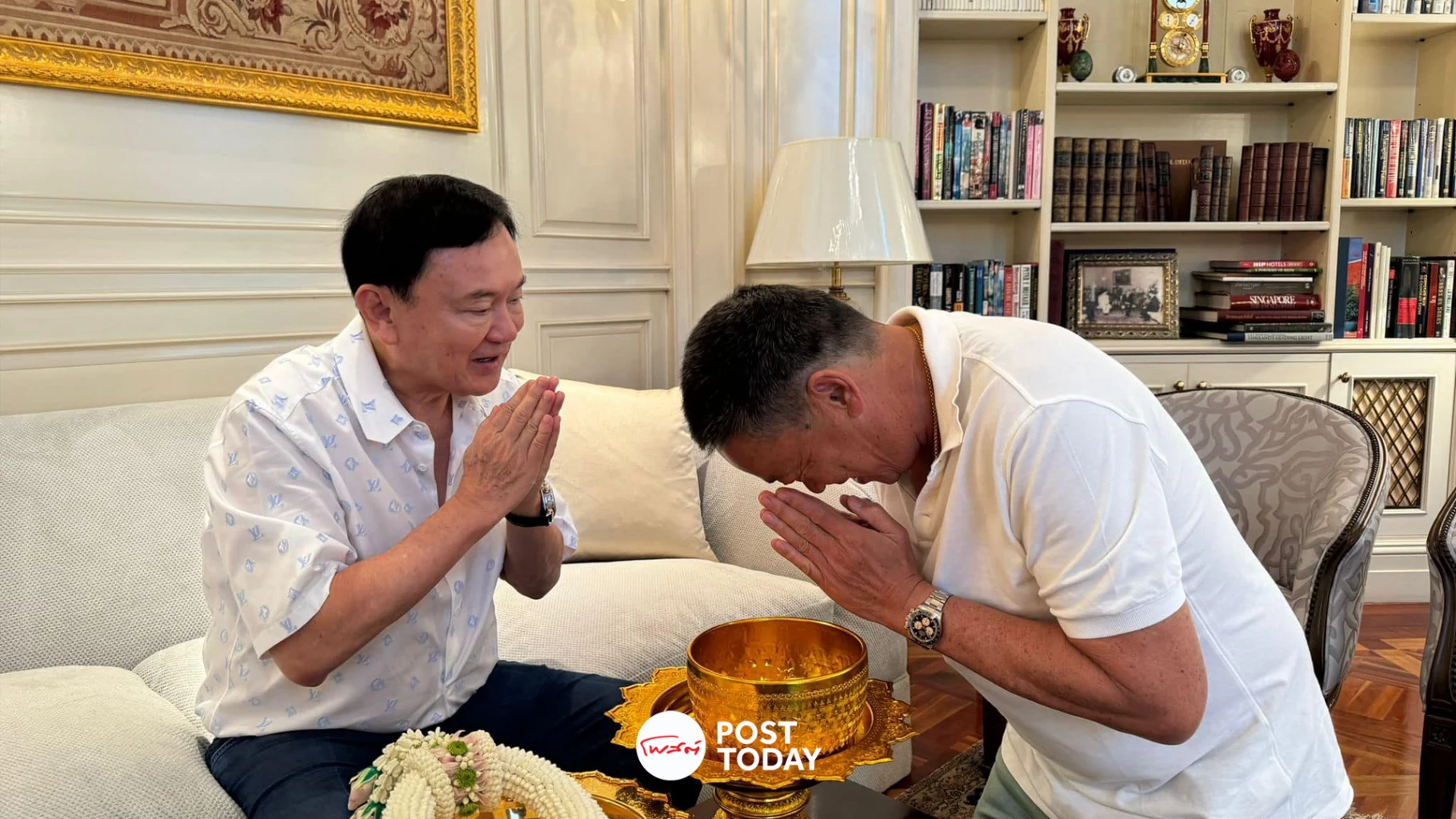 นายเศรษฐา ทวีสิน นายกรัฐมนตรีและรมว.คลัง โพสต์ข้อความผ่านเฟซบุ๊กส่วนตัว เป็นภาพ รดน้ำดำหัว นายทักษิณ ชินวัตร อดีตนายกรัฐมนตรีและข้อความมีเนื้อหาดังนี้ "มากราบขอพรและสวัสดีปีใหม่ไทยท่านนายกฯ ทักษิณผู้ใหญ่ที่เคารพครับ"