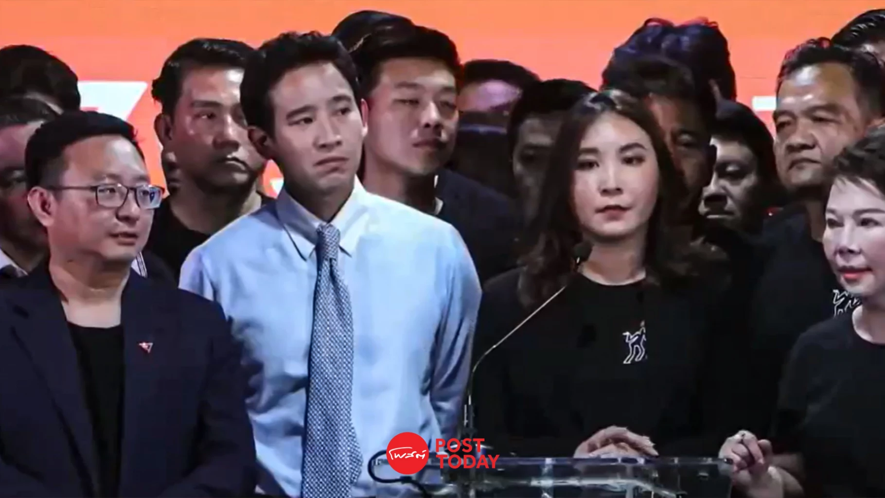 ที่อาคารอนาคตใหม่ ที่ทำการพรรคก้าวไกล รามคำแหง42 นายพิธา ลิ้มเจริญรัตน์ อดีตประธานที่ปรึกษาหัวหน้าพรรคก้าวไกล นายชัยธวัช ตุลาธน อดีตหัวหน้าพรรคก้าวไกล นางสาวศิริกัญญา ตันสกุล สส.บัญชีรายชื่อ พรรคก้าวไกล พร้อมด้วย สส.พรรคก้าวไกล พร้อมใจกันสวมเสื้อสีดำ ร่วมแถลงข่าวภายหลังศาลรัฐธรรมนูญ มีคำวินิจฉัยยุบพรรคก้าวไกล ตัดสิทธิ์การเมืองกรรมการบริหารพรรคทั้ง 11 คนเป็นเวลา 10 ปี