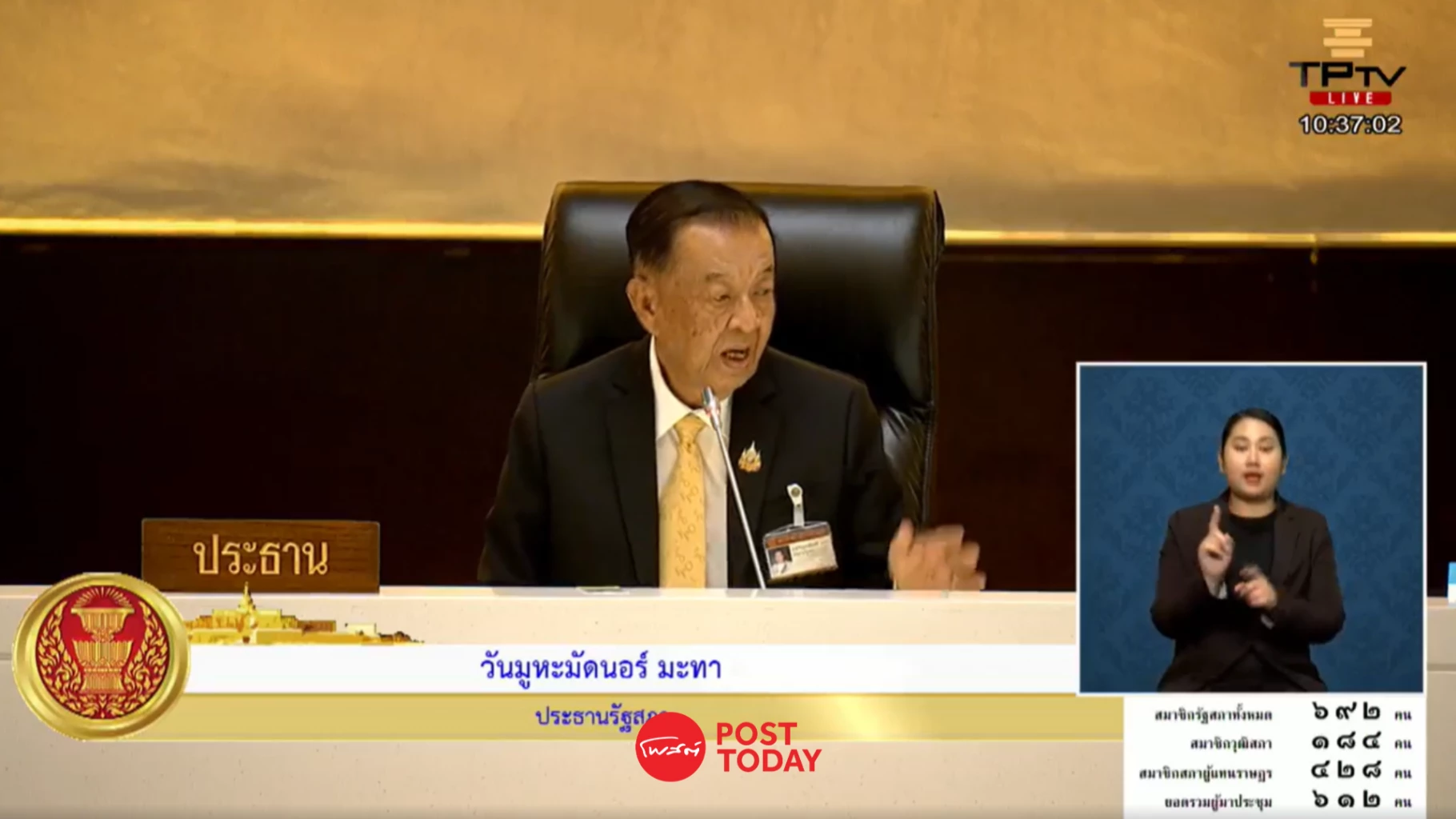 - นายมงคล สุระสัจจะ ประธานวุฒิสภา ฐานะรองประธานรัฐสภา