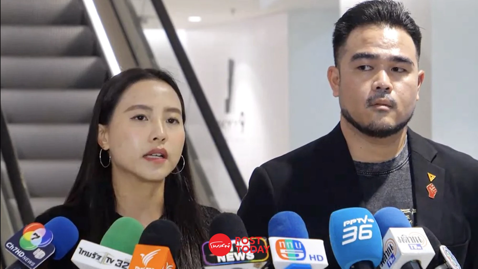 น.ส.รักชนก ศรีนอก สส.กรุงเทพฯ พรรคประชาชน และ นายสหัสวัต คุ้มคง สส.ชลบุรี พรรคประชาชน ร่วมแถลงข่าว ที่หน้าอาคาร SKYY9 Centre ย่านพระราม 9 กรณี “แฉเสียดฟ้า กองทุนประกันสังคมจงใจลงทุนผิดพลาด เพื่อเอื้อผลประโยชน์พวกพ้องหรือไม่” หลังสำนักงานประกันสังคม (สปส.) ซื้ออสังหาริมทรัพย์ย่านพระราม 9 ที่มีข้อสงสัยถึงปัญหาธรรมาภิบาล