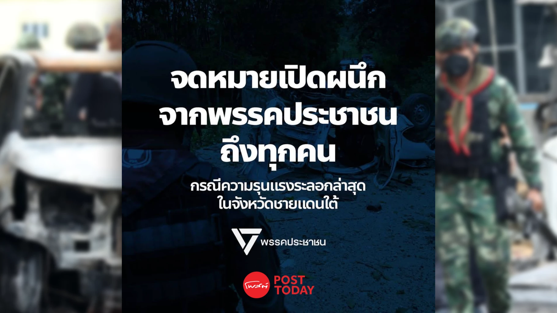 "พรรคประชาชน" ร่อน จดหมายเปิดผนึก วอน หยุดสังหารผู้บริสุทธิ์ จุดเริ่มต้นสันติภาพ "ชายแดนใต้" เรียกร้องทุกฝ่ายยุติความรุนแรงทันที!