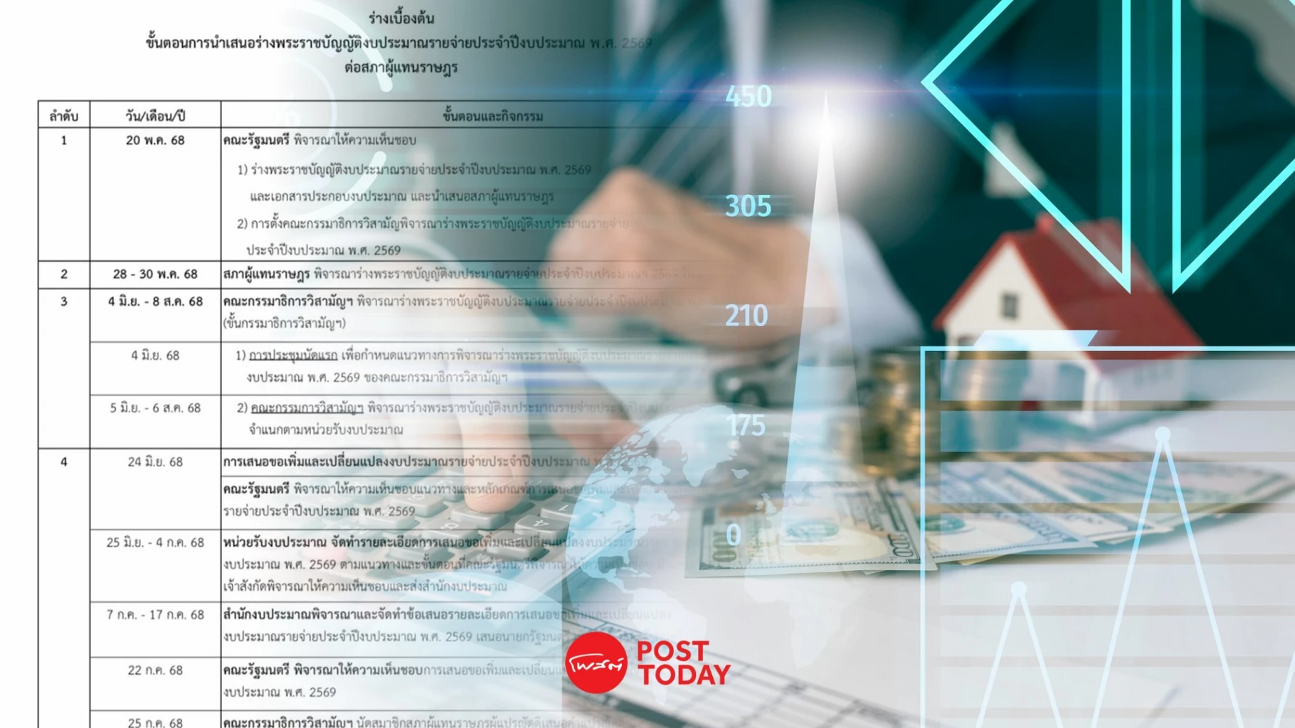 เปิดไทม์ไลน์ร่าง พ.ร.บ. งบฯ ปี' 69 ครม.พิจารณาเห็นชอบ 20 พ.ค.นี้