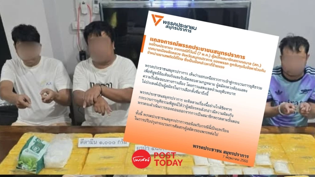 "พรรคประชาชน" ร่อนแถลงขอโทษ ชาวสมุทรปราการ ปม สท.โดนจับ "คดีค้ายาเสพติด" รับเป็นบทเรียนปรับปรุงกระบวนการคัดสรรผู้สมัคร