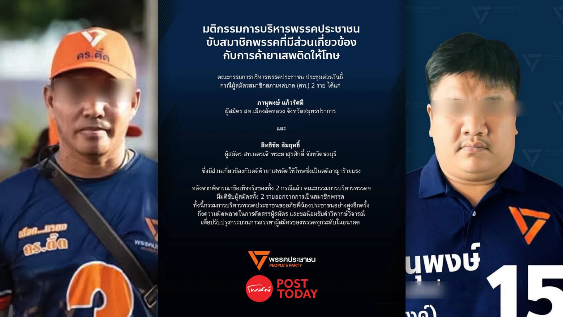 "พรรคประชาชน" มีมติ ขับ 2 ผู้สมัครสท. พ้นพรรค ปม เอี่ยว "คดีค้ายาเสพติด" รับผิดพลาดในการคัดสรร - น้อมรับคำวิจารณ์