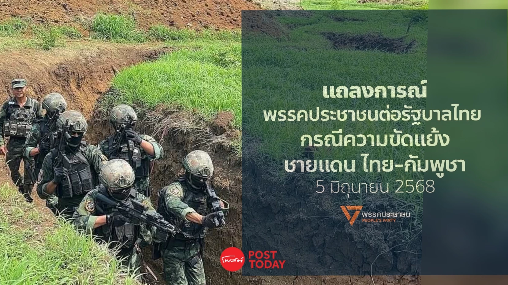 แถลงการณ์พรรคประชาชนต่อรัฐบาลไทย กรณีความขัดแย้งชายแดน ไทย-กัมพูชา 5 มิถุนายน 2568 ]