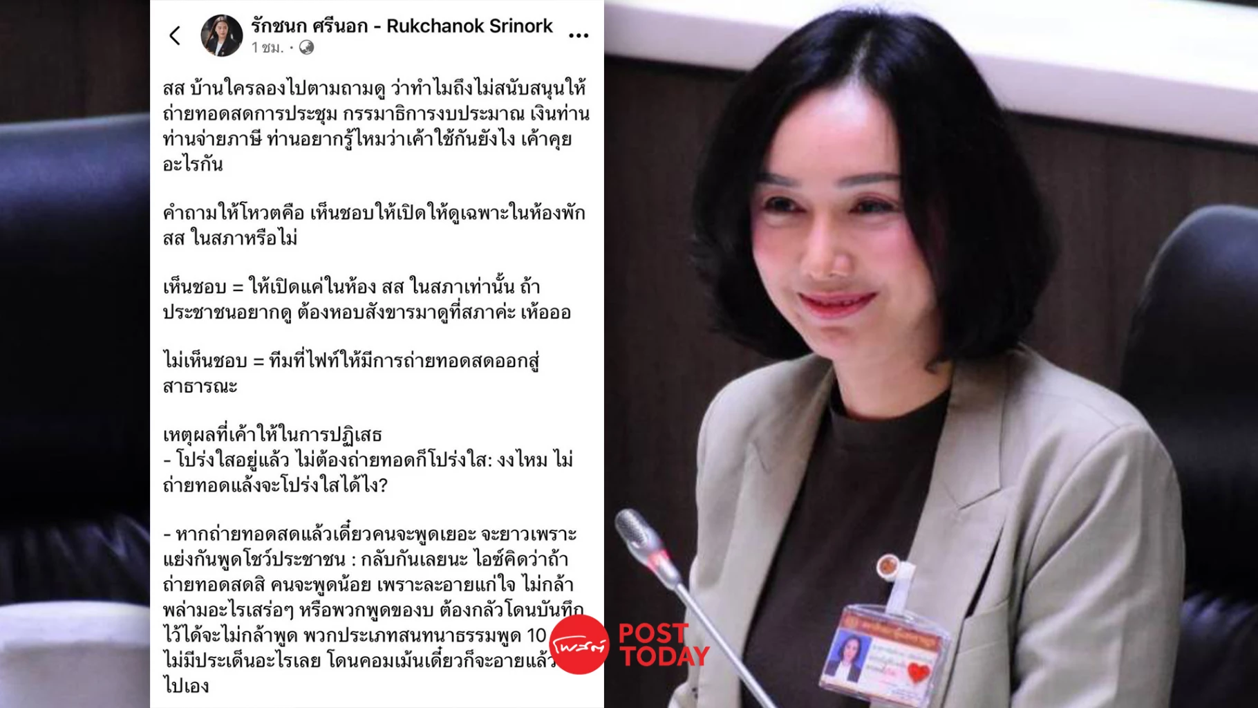 ภายหลังจากที่น.ส.รักชนก ศรีนอก สส.พรรคประชาชนออกมาเปิดเผยรายชื่อกรรมาธิการงบประมาณปี69 ที่ลงมติเห็นชอบไม่ถ่ายทอดสดการประชุมสู่สาธารณะ