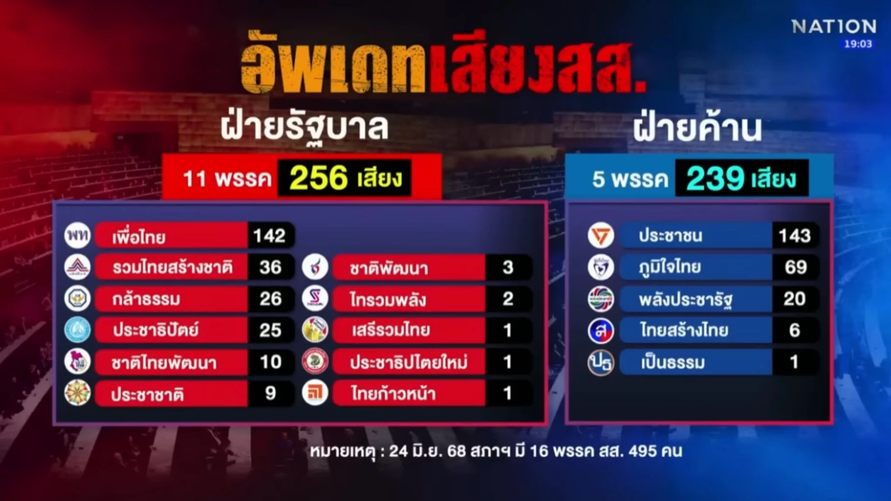 - พรรครวมไทยสร้างชาติ พบว่ามี ส.ส. บางส่วนอาจไปร่วมกับพรรคภูมิใจไทย