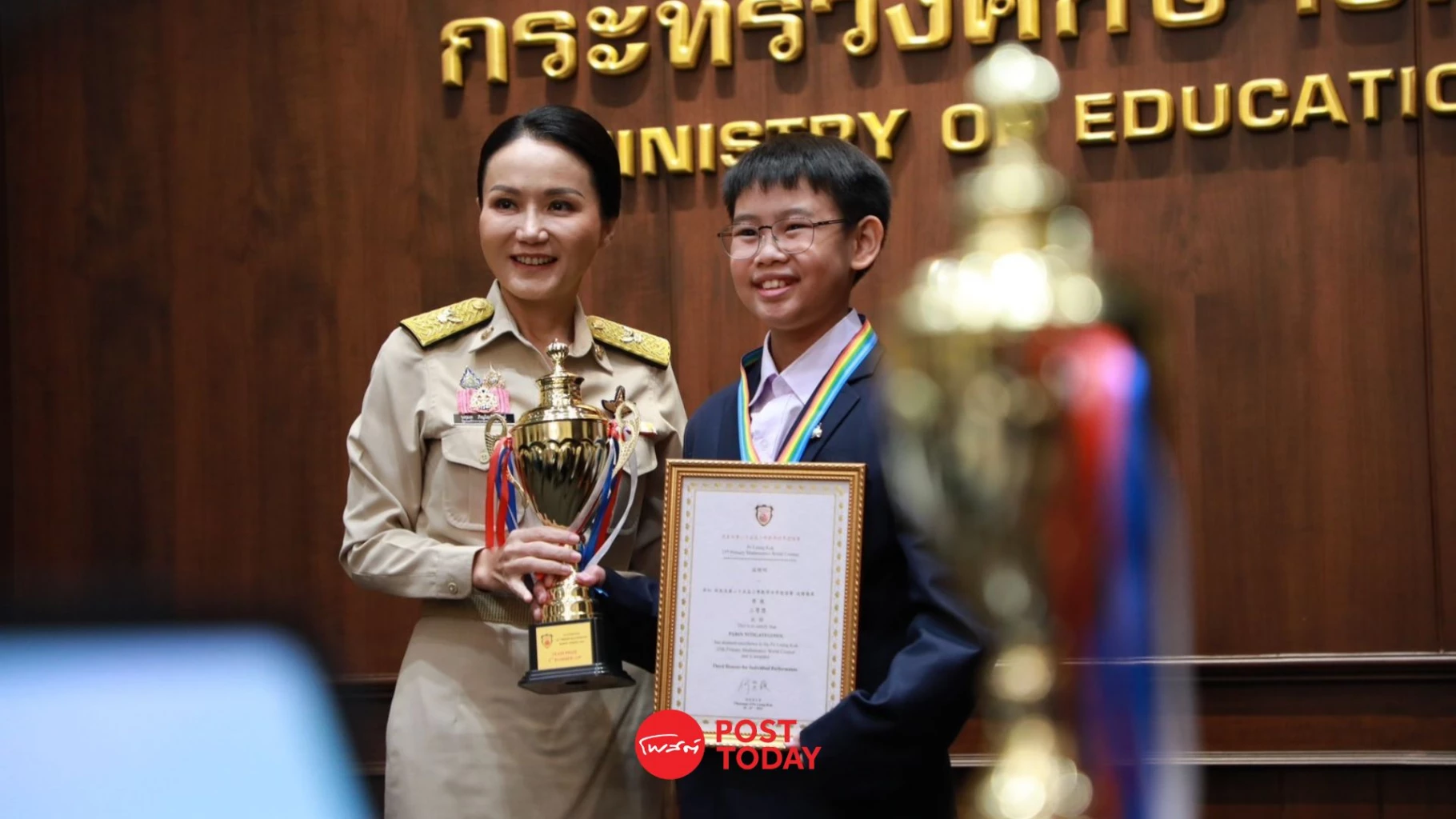 ศาสตราจารย์ ดร.นฤมล ภิญโญสินวัฒน์ รัฐมนตรีว่าการกระทรวงศึกษาธิการ (รมว.ศธ.) ได้เป็นประธานในการมอบโอวาทและให้กำลังใจแก่คณะผู้แทนนักเรียนไทยจำนวน 12 คน ที่จะเข้าร่วมการแข่งขันคณิตศาสตร์โลกระดับประถมศึกษาในรายการ Po Leung Kuk 25th Primary Mathematics World Contest (PMWC 2025) พร้อมทั้งมอบเหรียญรางวัลและเกียรติบัตรให้กับนักเรียนจำนวน 81 คนที่ได้รับรางวัลจากการแข่งขันในเวทีระดับนานาชาติอื่น ๆ รวมทั้งสิ้น 93 คน โดยจัดขึ้นที่ห้องประชุมราชวัลลภ ชั้น 2 กระทรวงศึกษาธิการ