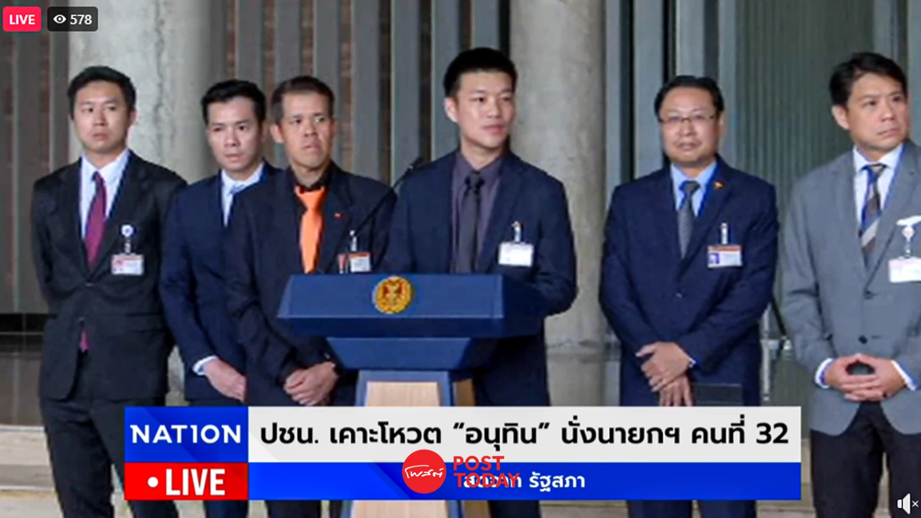 นาย ณัฐพงษ์ เรืองปัญญาวุฒิ หัวหน้าพรรคประชาชน แถลงข่าวที่รัฐสภาว่า ตามที่ศาลรัฐธรรมนูญได้มีคำวินิจฉัยให้นางสาวแพทองธาร ชินวัตร พ้นจากตำแหน่ง นายกรัฐมนตรี และให้คณะรัฐมนตรีต้องพ้นจากตำแหน่งทั้งคณะ ทำให้สภาผู้แทนราษฎรต้องพิจารณาให้ความเห็นชอบบุคคลซึ่งสมควรได้รับแต่งตั้งเป็นนายกรัฐมนตรี ตามรัฐธรรมญแห่งราชอาณาจักรไทยมาตรา 159 ที่ประชุมคณะกรรมการบริหารพรรคมีมติว่า หากมีการประชุมสภาผู้แทนราษฎรเพื่อเลือกนายกรัฐมนตรี พรรคประชาชนจะโหวตสนับสนุน อนุทิน ชาญวีรกูล หัวหน้าพรรคภูมิใจไทย แต่ต้องอยู่ภายใต้ 5 เงื่อนไขสำคัญ ดังนี้
