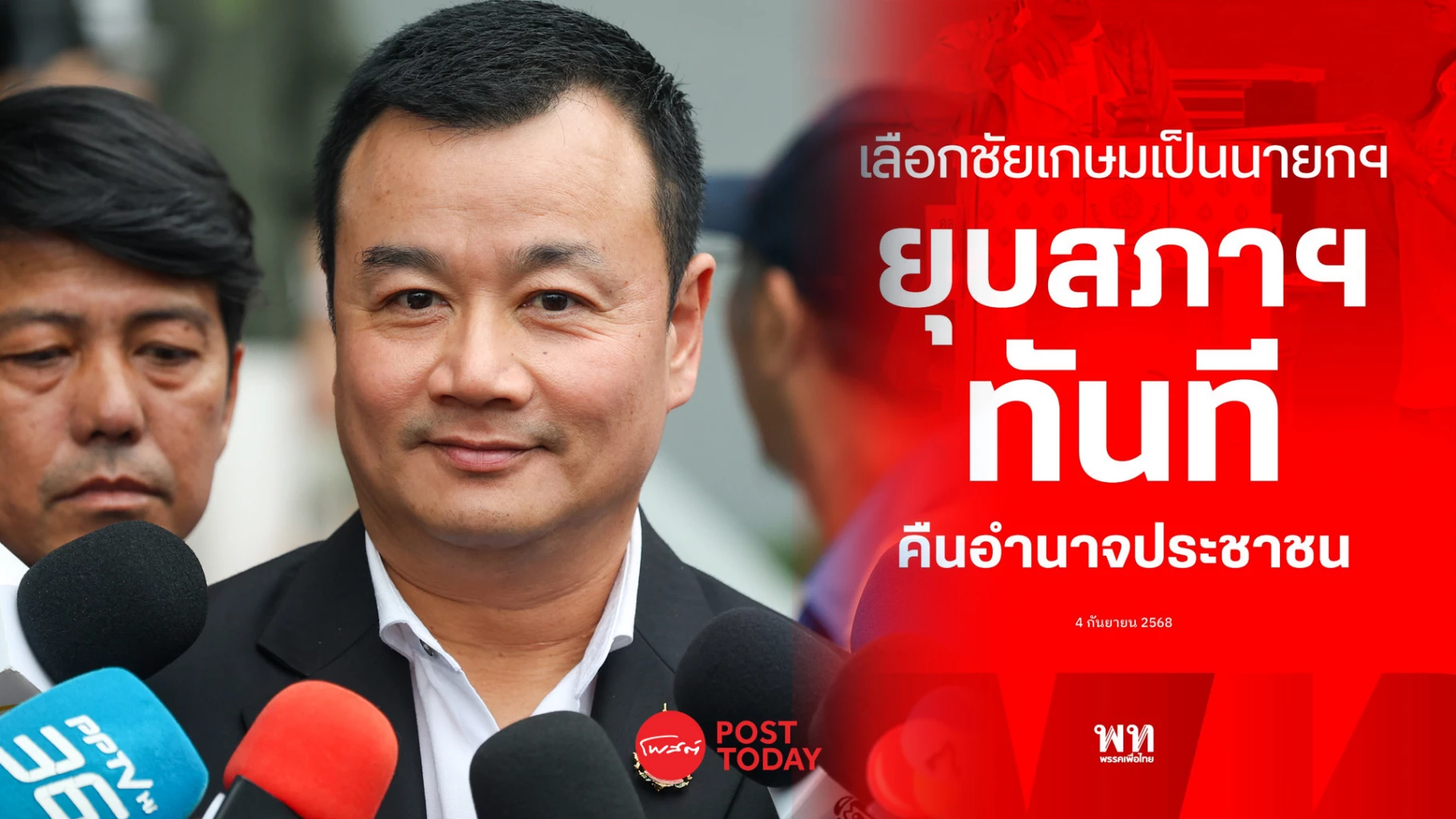 พรรคเพื่อไทย ยื่นข้อเสนอยุบสภาทันที ไม่รอ 4 เดือน แลกโหวตชัยเกษม