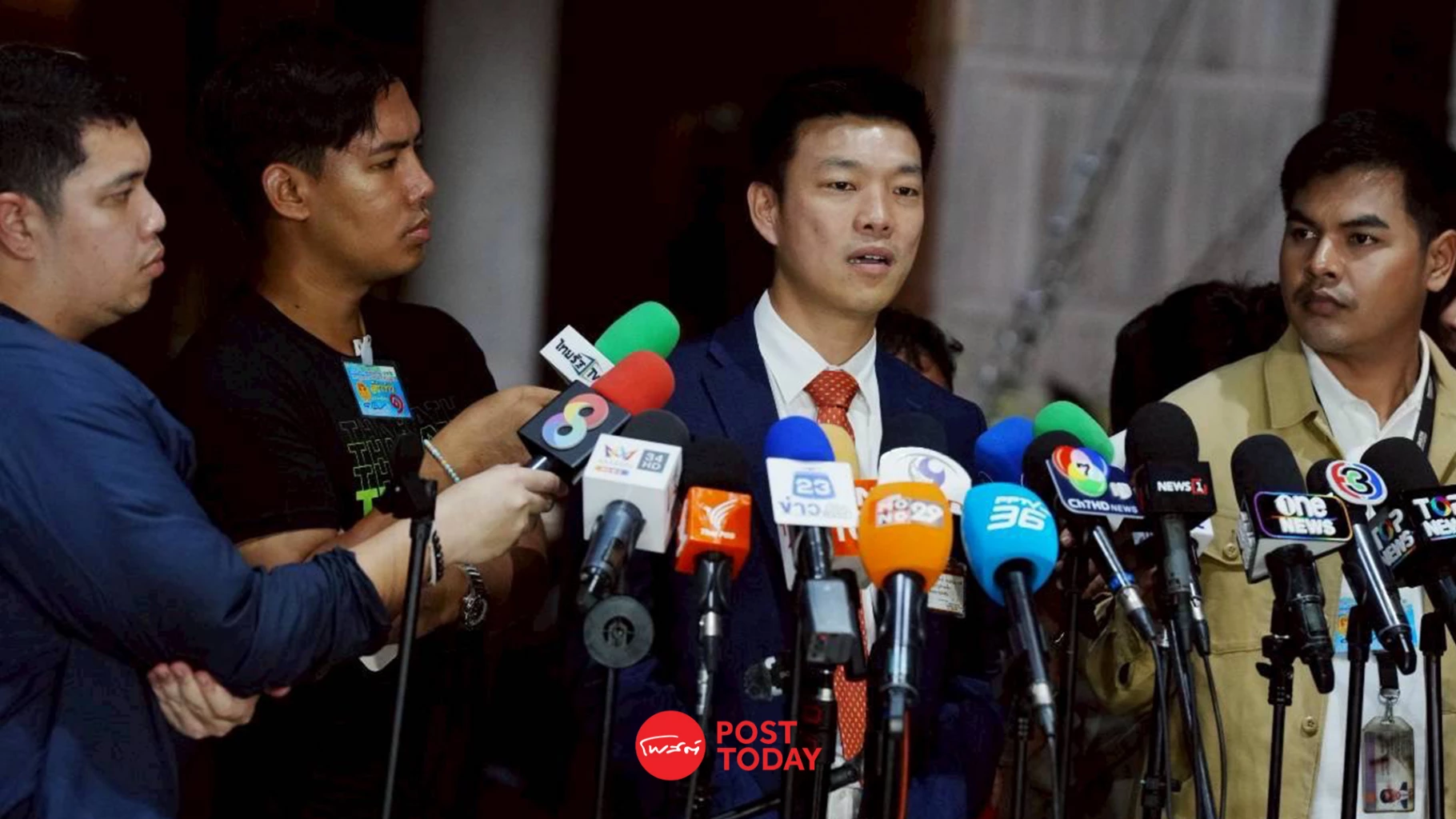 นายณัฐพงษ์ เรืองปัญญาวุฒิ หัวหน้าพรรคประชาชน แถลงหลังประชุมร่วมสมาชิกพรรค ถึงกรณีพรรคเพื่อไทยเสนอให้โหวตสนับสนุนนายชัยเกษม นิติสิริ เป็นนายกรัฐมนตรี เพื่อแลกกับการยุบสภาทันที