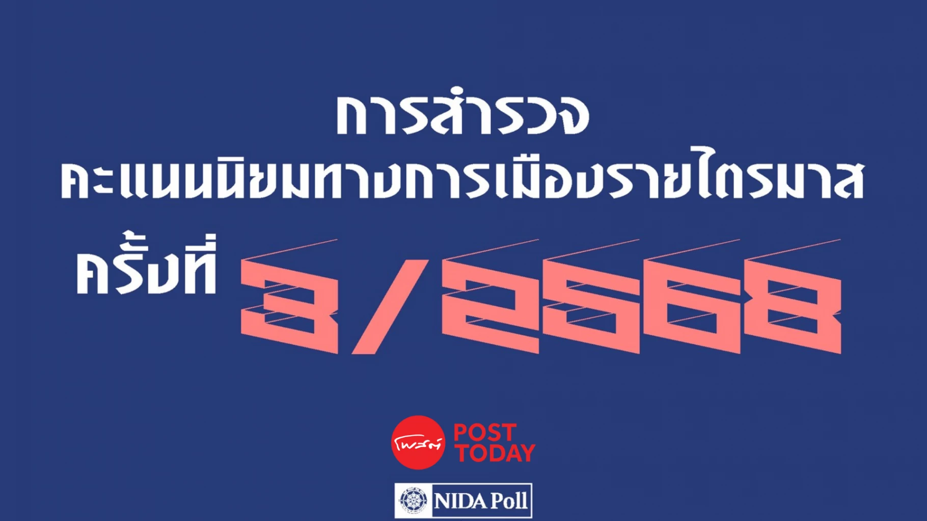 ศูนย์สำรวจความคิดเห็น “นิด้าโพล” สถาบันบัณฑิตพัฒนบริหารศาสตร์ (นิด้า) เปิดเผยผลการสำรวจ เรื่อง “การสำรวจคะแนนนิยมทางการเมืองรายไตรมาส ครั้งที่ 3/2568” ทำการสำรวจระหว่างวันที่ 19-24 กันยายน 2568 จากประชาชนที่มีอายุ 18 ปีขึ้นไป กระจายทุกภูมิภาค ระดับการศึกษา อาชีพ และรายได้ ทั่วประเทศ รวมจำนวนทั้งสิ้น 2,500 หน่วยตัวอย่าง เกี่ยวกับคะแนนนิยมทางการเมือง