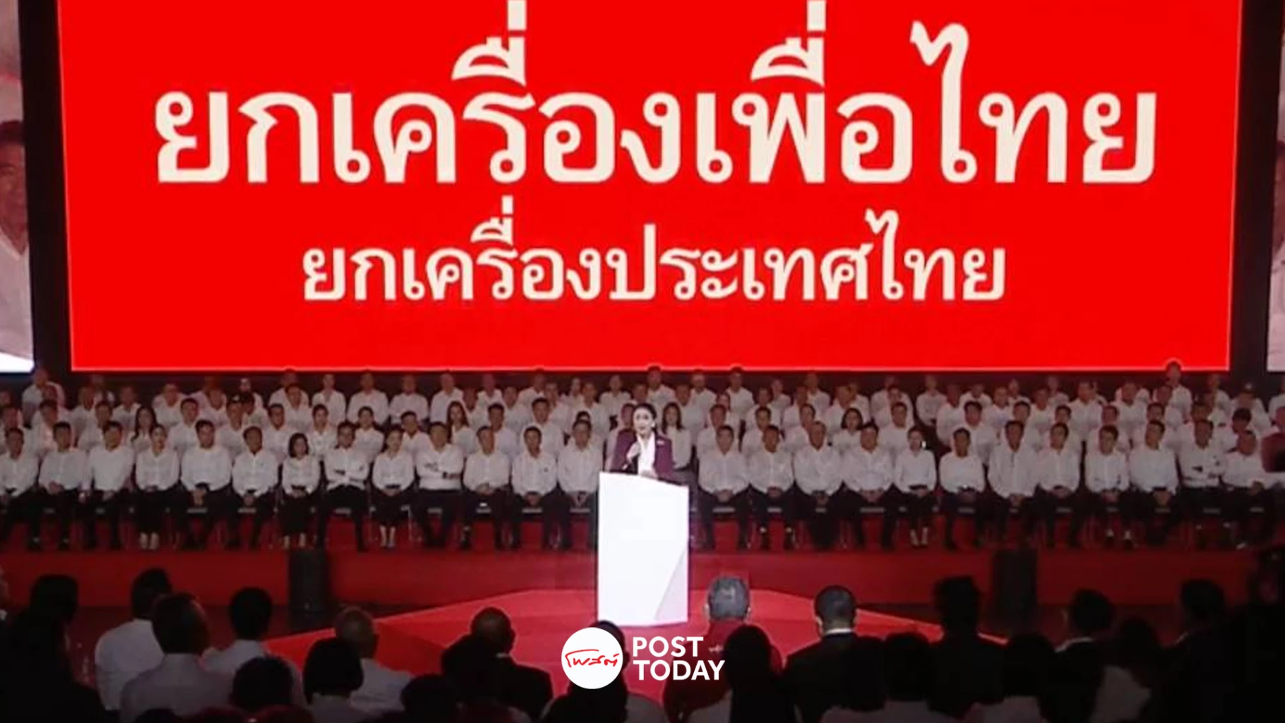 นางสาวแพทองธาร ชินวัตร หัวหน้าพรรคเพื่อไทย และอดีตนายกรัฐมนตรี กล่าวปาฐกถาในหัวข้อ “ยกเครื่องเพื่อไทย ยกเครื่องประเทศไทย“ พร้อมเปิดตัวผู้เสนอตัวสมัครเป็น สส.พรรคเพื่อไทย