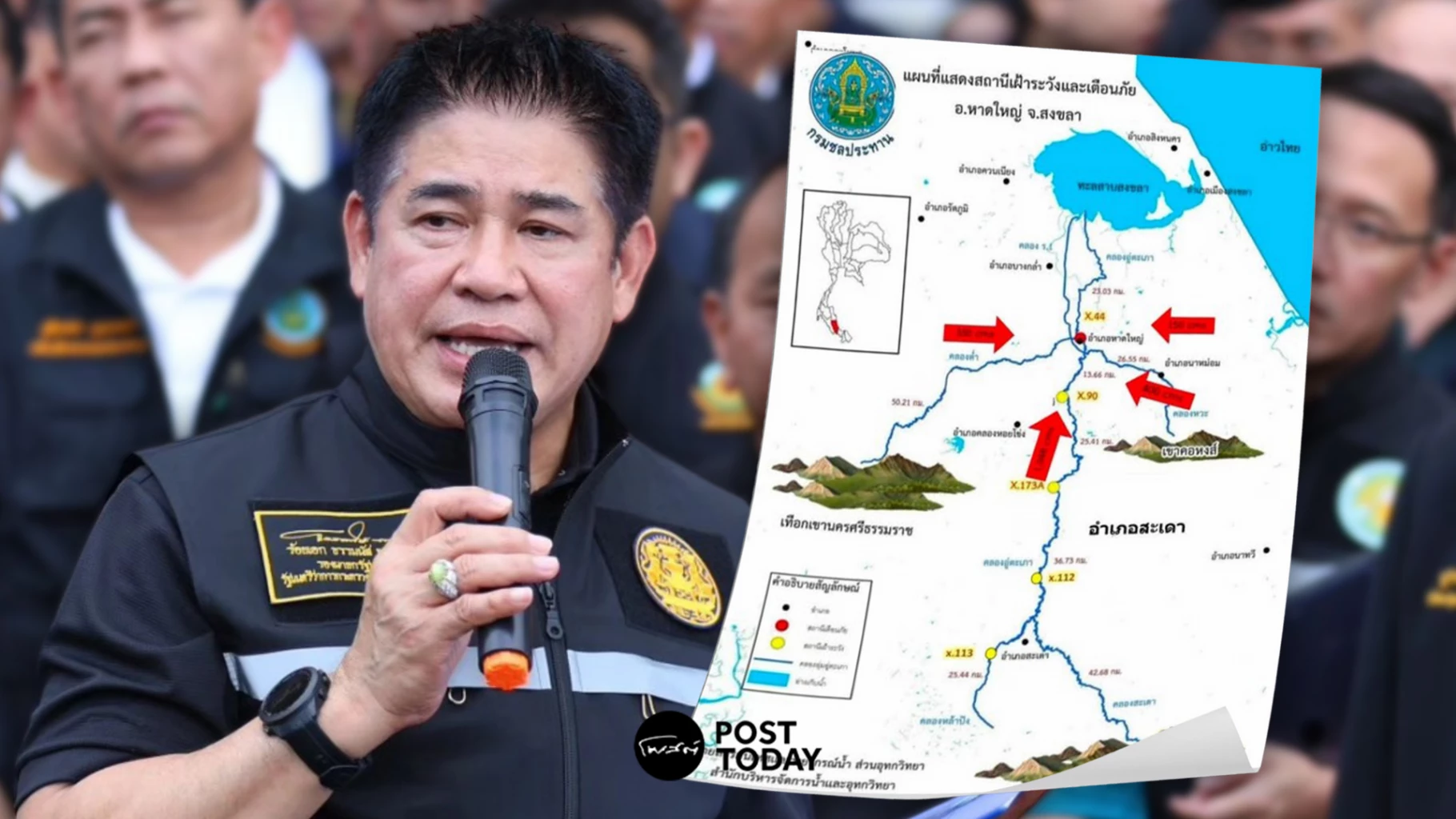 ฝนหนักสุดรอบ 300 ปีซัดหาดใหญ่ ปริมาณน้ำไหลเข้าลุ่มต่ำเกือบ 1,900 ลบ.ม./วินาที รัฐเร่งเปิดแผนระบายน้ำคลอง ร.1–อู่ตะเภา คาดคลี่คลายใน 3–5 วัน หากไร้ฝนเพิ่ม