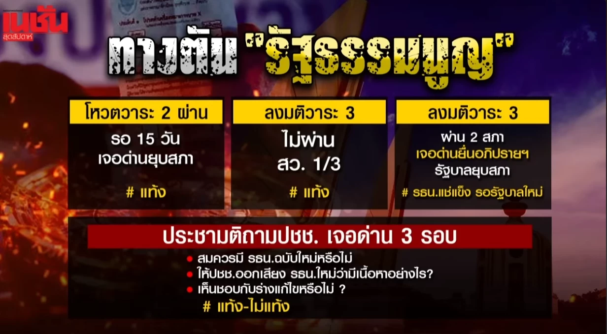 - ประชามติ 3 ครั้งคือด่านซ้อนด่าน เพิ่มทั้งเวลา ความไม่แน่นอน และดึงเกมการเมืองเข้าสู่ภาวะเสี่ยงยืดเยื้อ