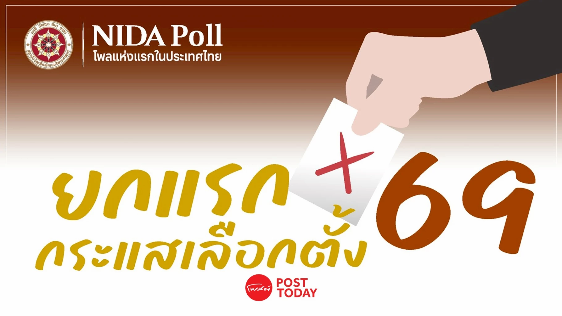 ศูนย์สำรวจความคิดเห็น “นิด้าโพล” สถาบันบัณฑิตพัฒนบริหารศาสตร์ (นิด้า) เปิดเผยผลการสำรวจเรื่อง “ยกแรก กระแสเลือกตั้ง 69” ซึ่งดำเนินการระหว่างวันที่ 5–8 มกราคม 2569 จากประชาชนอายุ 18 ปีขึ้นไปทั่วประเทศ ครอบคลุมทุกภูมิภาค ระดับการศึกษา อาชีพ และรายได้ รวมจำนวนทั้งสิ้น 2,500 ตัวอย่าง การสำรวจใช้วิธีสุ่มตัวอย่างโดยอาศัยความน่าจะเป็นจากฐานข้อมูลตัวอย่างหลัก (Master Sample) ของนิด้าโพล สุ่มแบบหลายขั้นตอน (Multi-stage Sampling) และเก็บข้อมูลด้วยการสัมภาษณ์ทางโทรศัพท์ โดยกำหนดค่าความคลาดเคลื่อนไม่เกิน 0.05 ที่ระดับความเชื่อมั่นร้อยละ 97.0