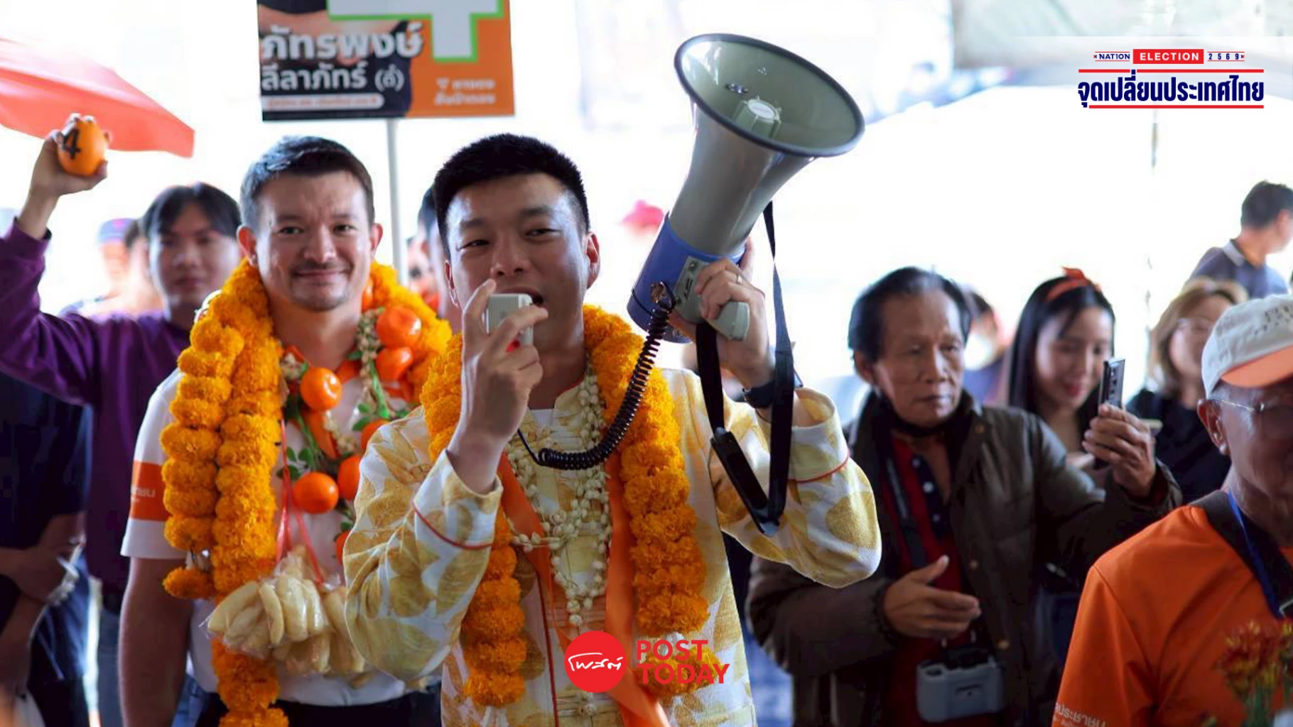 ณัฐพงษ์ เรืองปัญญาวุฒิ แคนดิเดตนายกรัฐมนตรีของพรรคประชาชน ลงพื้นที่จังหวัดเชียงใหม่หาเสียงเลือกตั้ง ณ ตลาดสดเทศบาลตำบลหางดง เพื่อช่วยหาเสียงให้กับ “ตี๋ ภัทรพงษ์” ผู้สมัครของพรรคประชาชน ท่ามกลางบรรยากาศคึกคักจากพ่อค้าแม่ค้าและพี่น้องประชาชนมารอมอบส้มและดอกไม้ให้