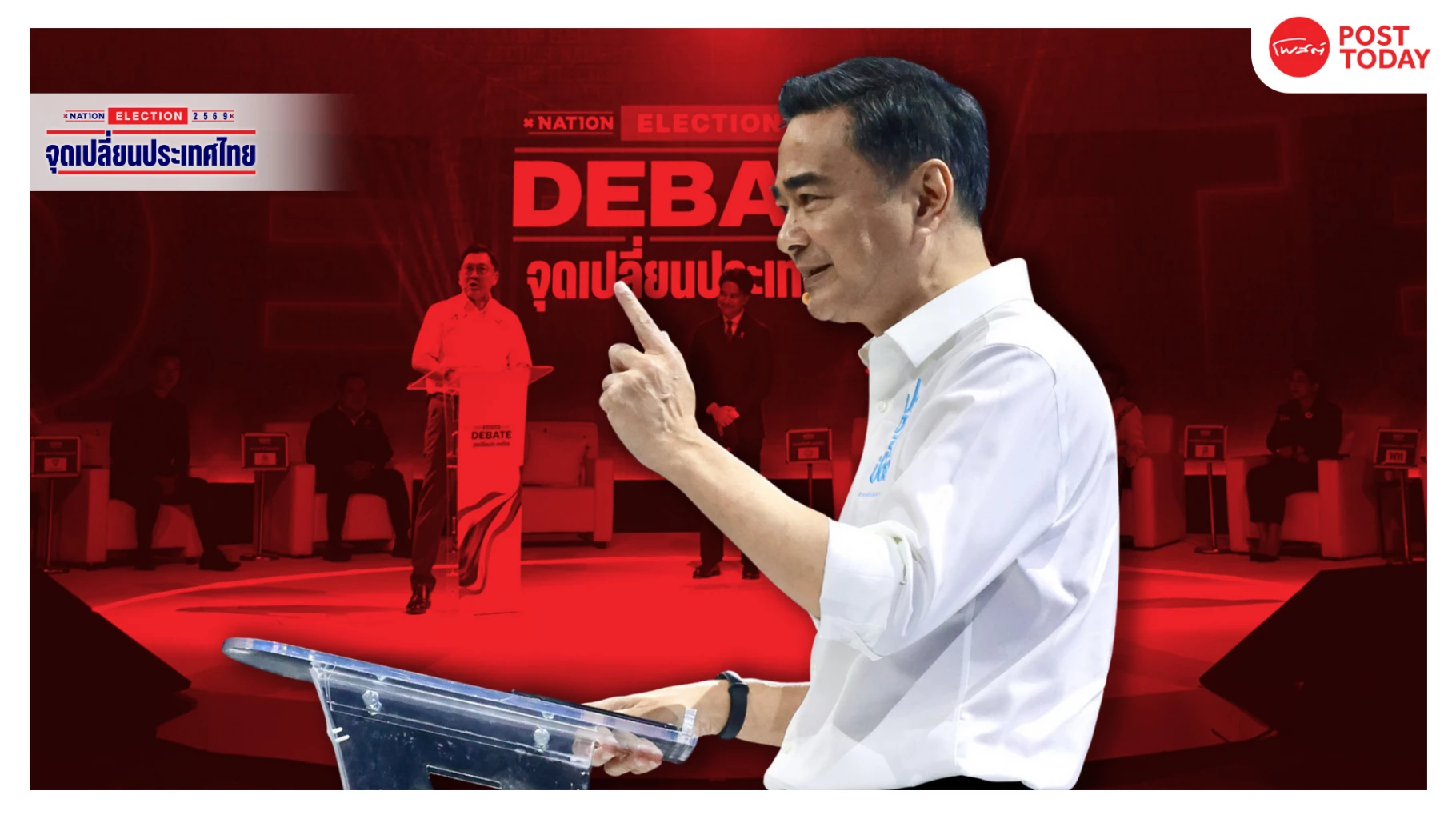 อภิสิทธิ์ เวชชาชีวะ แสดงวิสัยทัศน์ปราบคอร์รัปชันบนเวที NATION ELECTION 2569 เสนอใช้เทคโนโลยีตรวจโกง แก้ซื้อขายตำแหน่ง และย้ำพรรคต้องมีมาตรฐานทางการเมืองสูงกว่ากฎหมาย