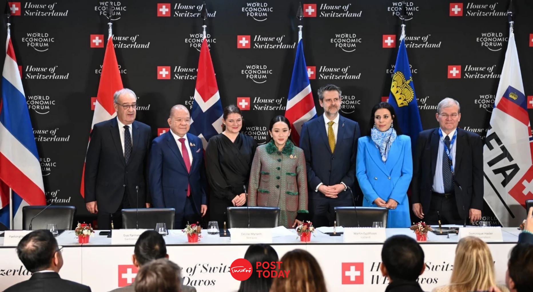 ขอชี้แจงข้อเท็จจริงว่า การเจรจาเขตการค้าเสรี (FTA) ระหว่างไทย และ กลุ่ม EFTA ได้ดำเนินการเสร็จสิ้นไปแล้วตั้งแต่วันที่ 30 พฤศจิกายน 2567 มีพิธีลงนาม ณ House of Switzerland กรุงดาวอส สมาพันธรัฐสวิส เมื่อวันที่ 23 มกราคม 2568 ในการประชุม World Economic Forum (WEF) ปีที่แล้ว