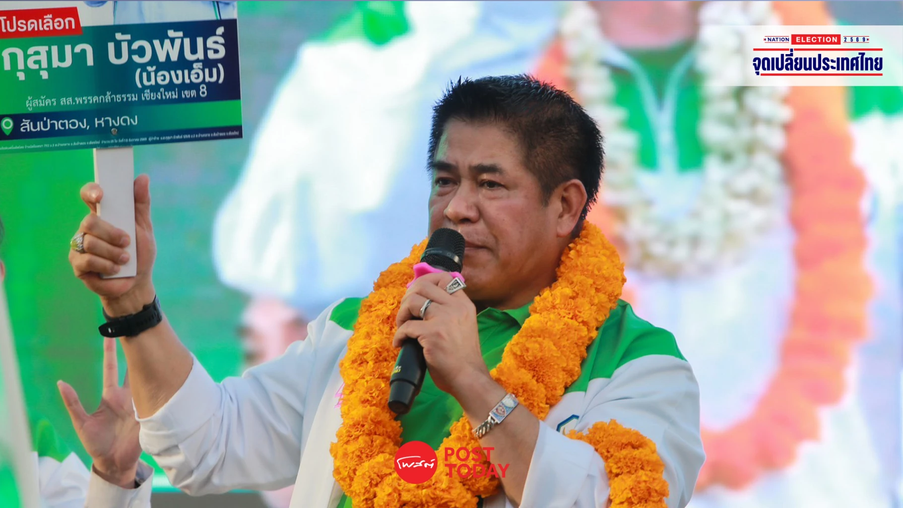 “การเลือกตั้งปี 2566 เชียงใหม่มีอยู่ 2 สี คือ สีนี่ กับ สีนั้น เวลามาหาเสียง สีนั้นก็พูดดี พี่น้องเชียงใหม่จะกระเป๋าตุง กาเบอร์นี้ พรรคนี้นะ แต่กระเป๋าตุงหรือไม่ เงินดิจิทัลคนละ 10,000 บาท ใครได้แล้ว แต่พรรคกล้าธรรม ไม่ต้องขายฝันพี่น้อง เราทำดีแล้ว เราทำต่อสานต่อ ต่อยอดให้มันได้จริงๆ นโยบายเรื่องที่ดินทำกิน ที่ผ่านมาเคยถูกปรามาสว่า ผมจะทำไม่ได้ แต่ขณะนี้ได้พิสูจน์แล้วว่าสำเร็จแล้ว และจากนี้จะเดินหน้าต่อยอดให้ประชาชนเข้าถึงแหล่งทุน สร้างความเข้มแข็งให้ฐานรากของประเทศ”