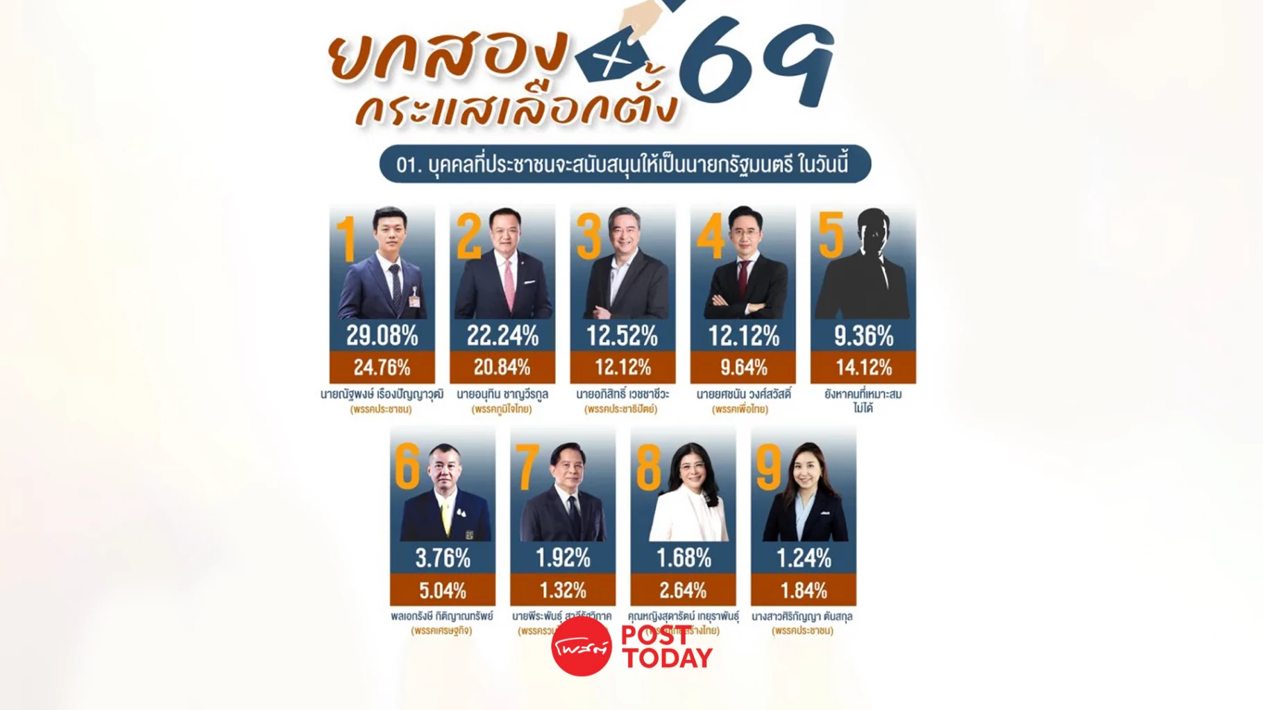 อันดับ 1 ร้อยละ 29.08 ระบุ ณัฐพงษ์ เรืองปัญญาวุฒิ จาก พรรคประชาชน