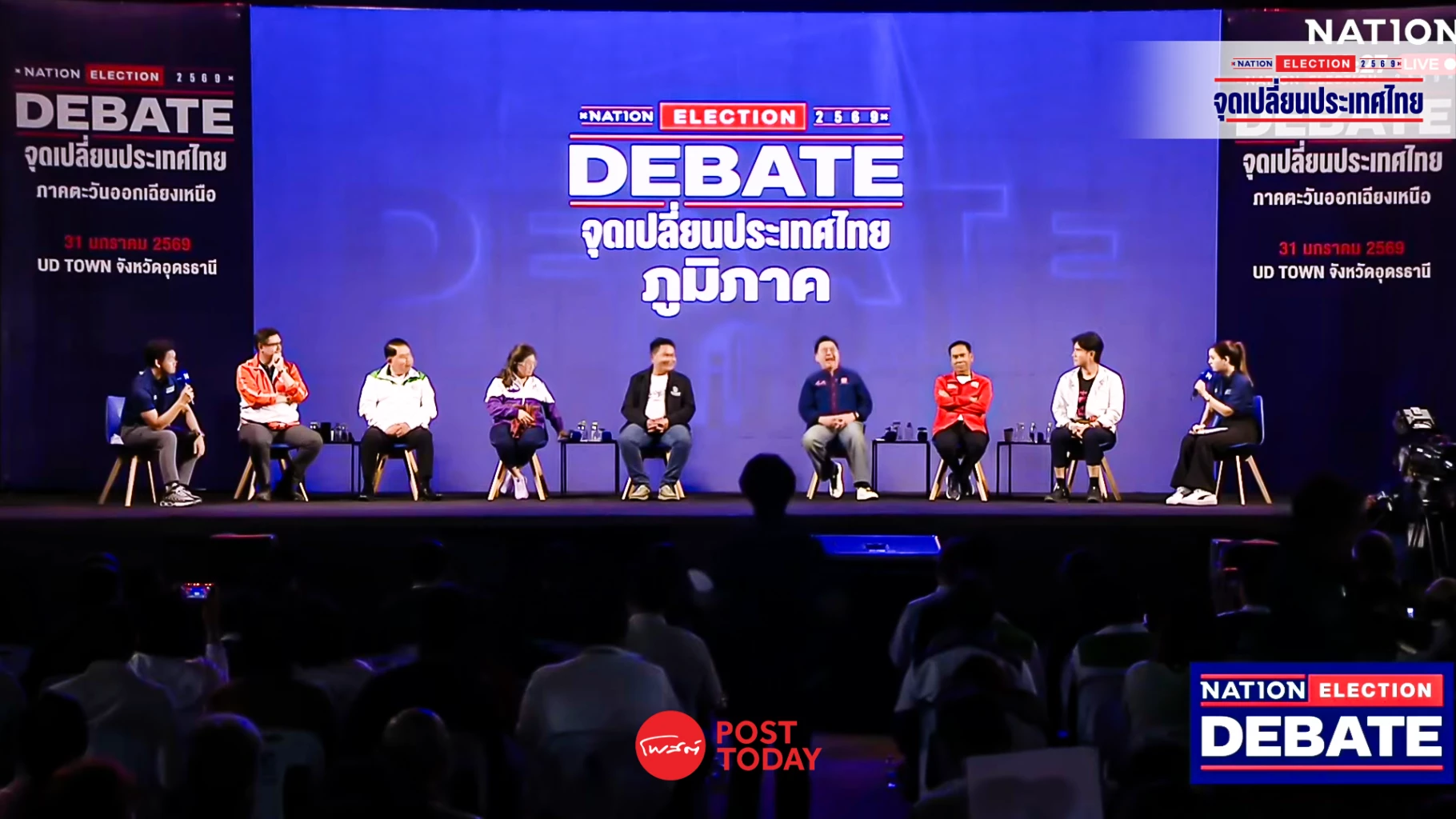 เมื่อวันที่ 31 ม.ค. 2569 เนชั่นทีวี เปิดเวทีดีเบตสัญจรในรายการ NATION ELECTION 2569 จุดเปลี่ยนประเทศไทย เวทีภาคตะวันออกเฉียงเหนือ ณ ลานเดอะแลนด์ ยูดีทาวน์ จังหวัดอุดรธานี ตั้งแต่เวลา 17.00 น. เปิดพื้นที่ให้ประชาชนรับฟังวิสัยทัศน์และนโยบายจากแกนนำพรรคการเมืองในช่วงโค้งสุดท้ายก่อนวันเลือกตั้ง