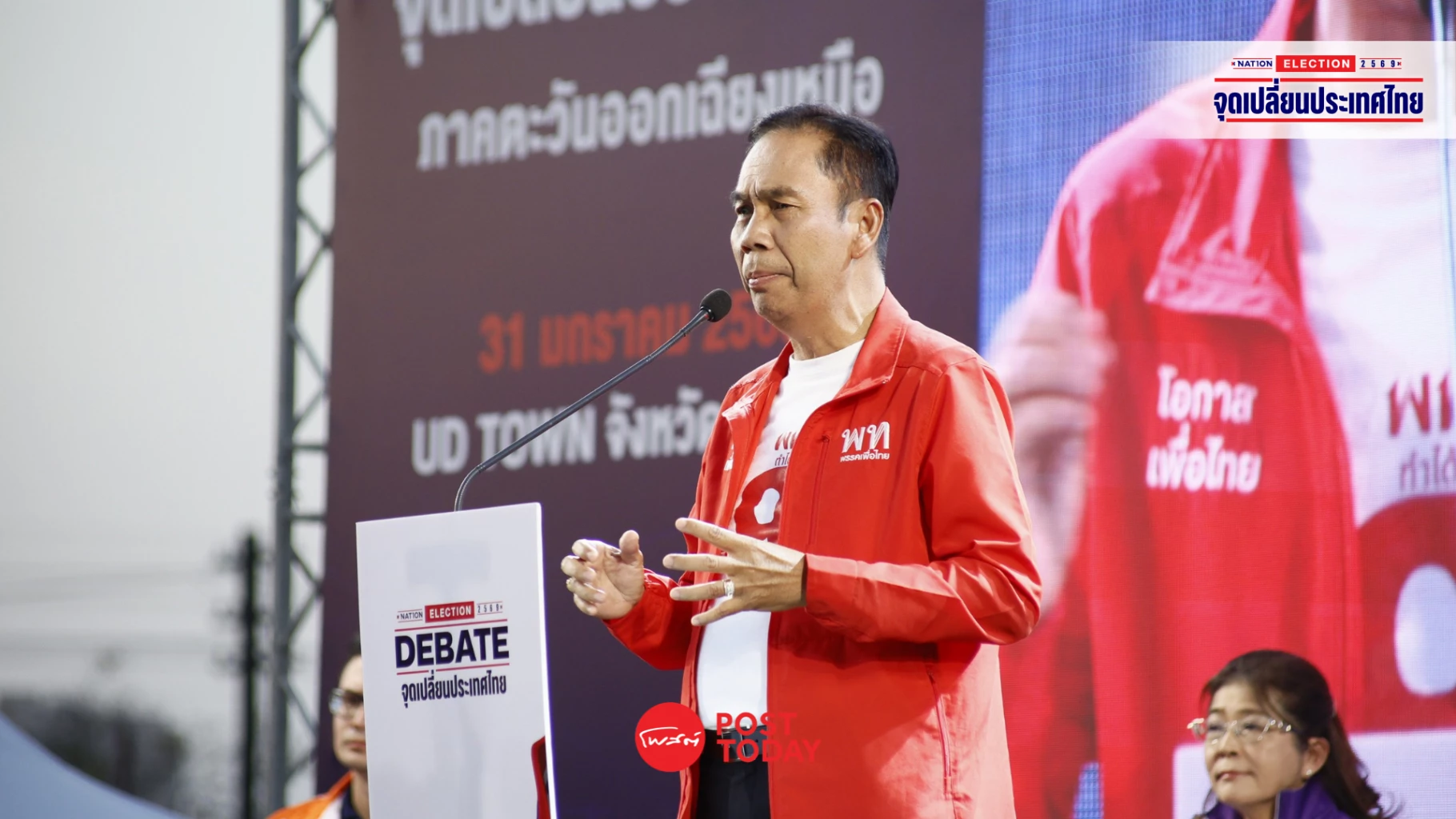 บนเวทีดีเบตสัญจรในรายการ NATION ELECTION 2569 จุดเปลี่ยนประเทศไทย เวทีภาคตะวันออกเฉียงเหนือ ณ ลานเดอะแลนด์ ยูดีทาวน์ จังหวัดอุดรธานี ในวันที่ 31 มกราคม 2569 เปิดพื้นที่ให้ประชาชนรับฟังวิสัยทัศน์และนโยบายจากแกนนำพรรคการเมืองในช่วงโค้งสุดท้ายก่อนวันเลือกตั้ง