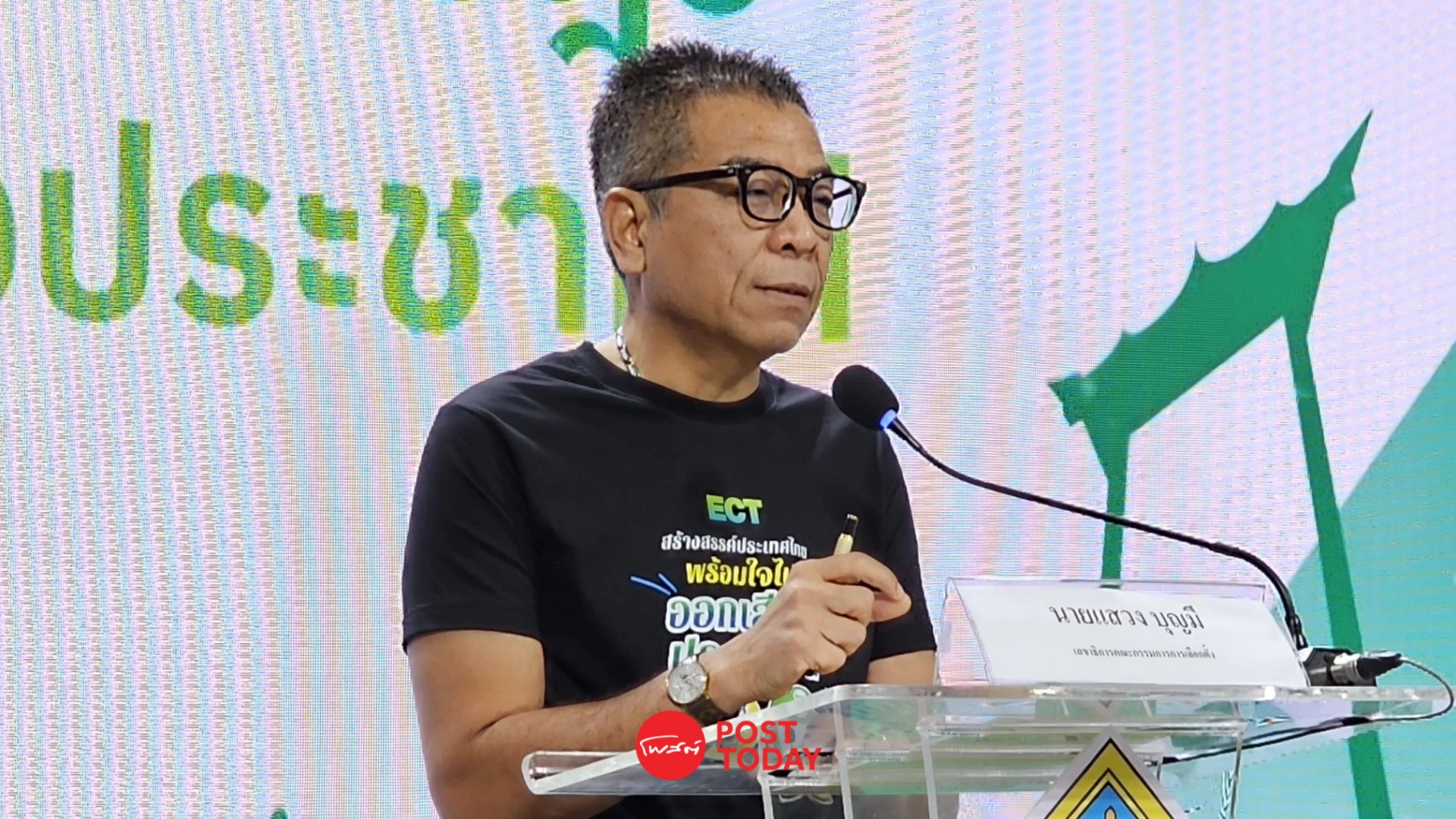 ที่สำนักงานคณะกรรมการการเลือกตั้ง (กกต.) นายแสวง บุญมี เลขาธิการคณะกรรมการการเลือกตั้ง แถลงข่าว ประเด็น "ภาพรวมการเปิดสถานที่เลือกตั้งกลาง สมาชิกสภาผู้แทนราษฎร (สส.) นอกเขตเลือกตั้ง และในเขตเลือกตั้ง ทั่วประเทศ โดยมีผู้บริหารระดับสูงกกต. ร่วมรับฟังการแถลงข่าวด้วย
