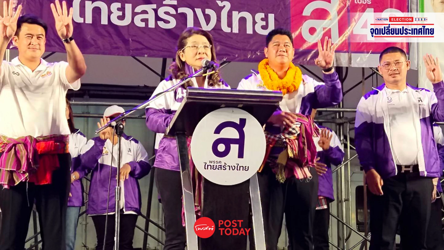 คุณหญิงสุดารัตน์ เกยุราพันธุ์ แคนดิเดตนายกรัฐมนตรี พรรคไทยสร้างไทย หมายเลข 48 เปิดเวทีปราศรัยใหญ่โค้งสุดท้าย ณ จังหวัดร้อยเอ็ด เพื่อพบปะประชาชนและช่วยผู้สมัครสมาชิกสภาผู้แทนราษฎรของพรรคหาเสียงในพื้นที่ ท่ามกลางประชาชนที่เข้าร่วมรับฟังอย่างคึกคัก