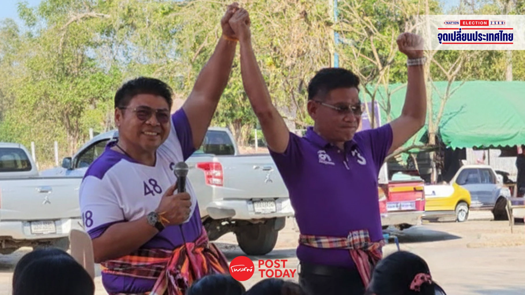 - ต่อพงษ์และจักรพรรดิ ไชยสาส์น จากพรรคไทยสร้างไทย ลงพื้นที่หาเสียงในจังหวัดอุดรธานี
