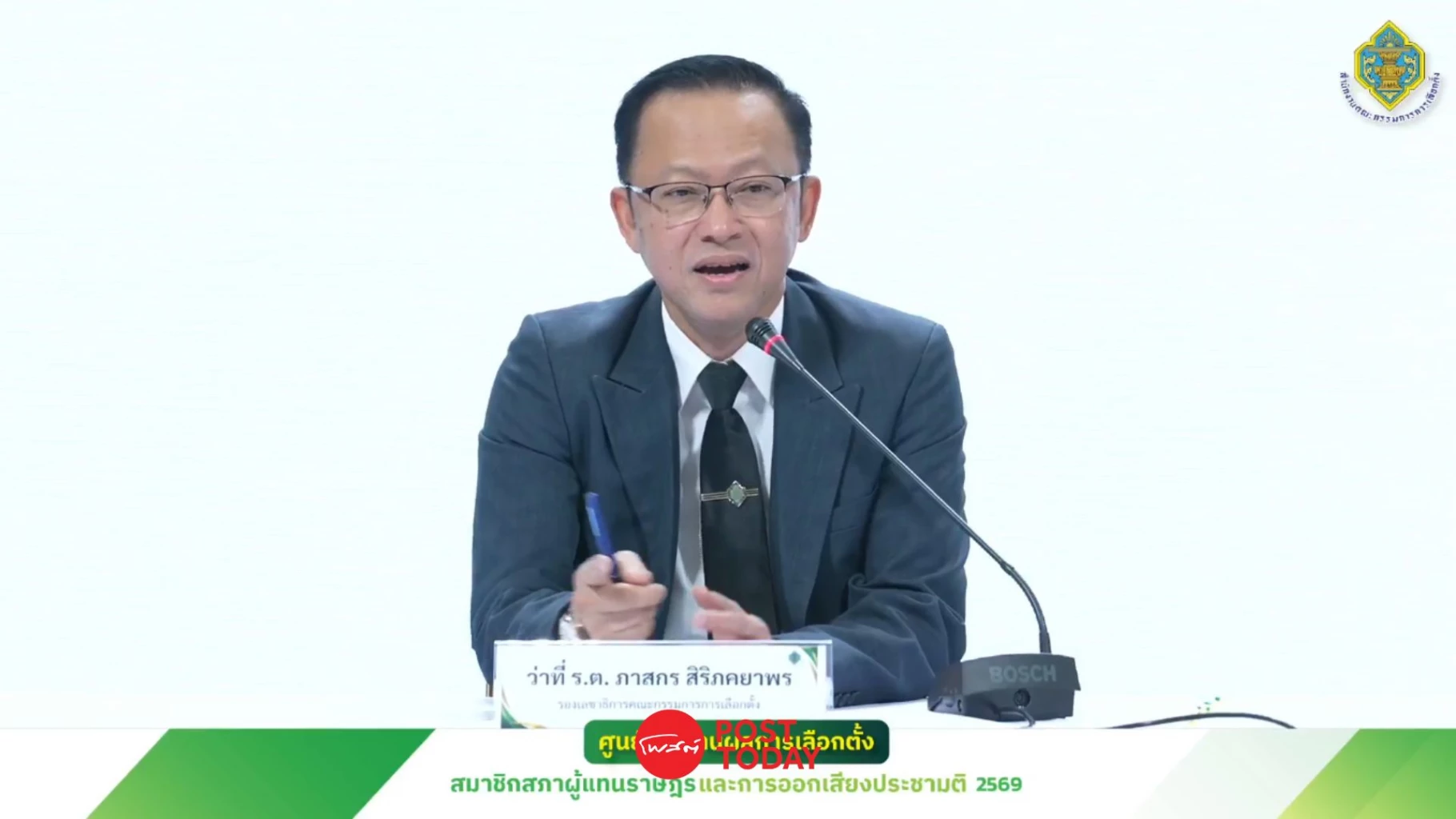 เมื่อเวลา 14.00 น. วันที่ 10 กุมภาพันธ์ 2569 ที่ศูนย์การเลือกตั้ง สส. และออกเสียงประชามติ สำนักงาน กกต. ว่าที่ ร.ต.ภาสกร สิริภคยาพร รองเลขาธิการ กกต. พร้อมด้วยนายครรชิต เจริญอินทร์ รองเลขาธิการ กกต. แถลงชี้แจงถึงกระบวนการเลือกตั้งและการพิจารณาคำร้องนับคะแนนใหม่