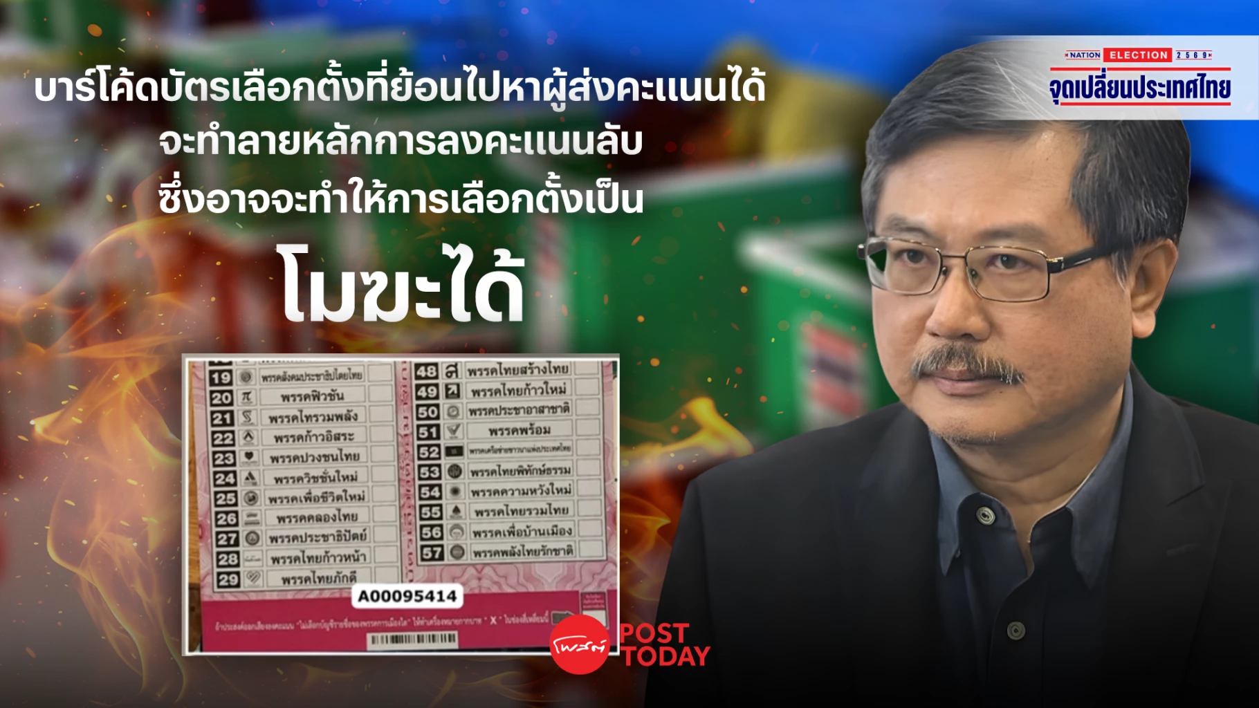 รศ.ดร.พิชาย รัตนดิลก ณ ภูเก็ต เตือนกรณีบาร์โค้ดบนบัตรเลือกตั้งบัญชีรายชื่อ หากเป็นรหัสเฉพาะที่ระบุตัวผู้ใช้สิทธิได้ จะกระทบหลักการลงคะแนนลับทันที