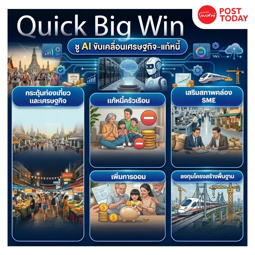 เจาะนโยบายครม.อนุทิน2 รุก Quick Big Win 5 ด้าน ใช้ AI ดันเศรษฐกิจ-แก้หนี้