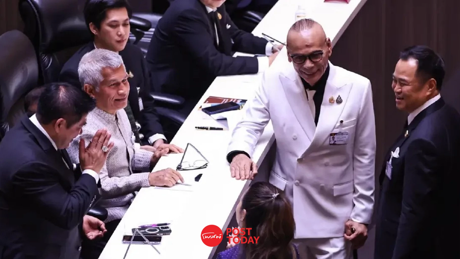 ในการประชุมร่วมกันของรัฐสภาเมื่อวันที่ 9 เมษายน 2569 ภายหลังจากที่ นายอนุทิน ชาญวีรกูล นายกรัฐมนตรีและรัฐมนตรีว่าการกระทรวงมหาดไทย ได้แถลงนโยบายของคณะรัฐมนตรีต่อสภาเป็นที่เรียบร้อยแล้ว นายกรัฐมนตรีได้ตัดสินใจเดินลงจากบัลลังก์เพื่อเข้าไปทักทายสมาชิกสภาผู้แทนราษฎรในห้องประชุมอย่างเป็นกันเอง โดยจังหวะสำคัญเกิดขึ้นเมื่อนายอนุทินเดินไปยังบริเวณที่นั่งของสมาชิกพรรคกล้าธรรม