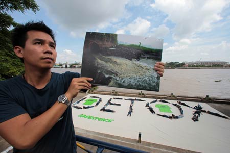 นอกจากนี้ สมาชิกกลุ่มกรีนพีช 40 คน ได้นอนเรียงเป็นอักษรข้อความว่า “Detox” หรือ “ล้างสารพิษ” อีกด้วย