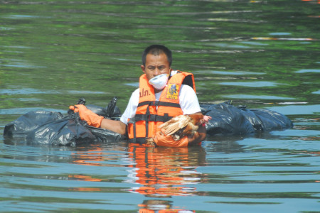 นายอารี กล่าวว่า ไก่ที่ถูกน้ำท่วมตายนั้นมีกว่า 1 ล้านตัวจึงต้องเร่งดำเนินการขนย้าย โดยนำซากไก่ใส่ถุงดำและพ่นด้วยน้ำยาฆ่าเชื้อ จากนั้นจะนำไปฝังกลบ โดยขณะนี้ได้ประสานกับเจ้าหน้าที่กระทรวงทรัพยากรธรรมชาติและสิ่งแวดล้อมไว้แล้ว จากนั้นจะนำซากไก่ทั้งหมดไปฝังไว้ใน ต.บ้านนา จ.นครนายก ส่วนที่เหลือจะนำไปเผาในเขตจ.ปทุมธานีต่อไป
