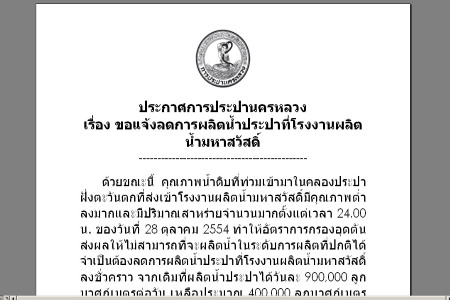 กปน.แจ้งฝั่งธนบุรี นนทบุรี สมุทรปราการ สำรองน้ำ